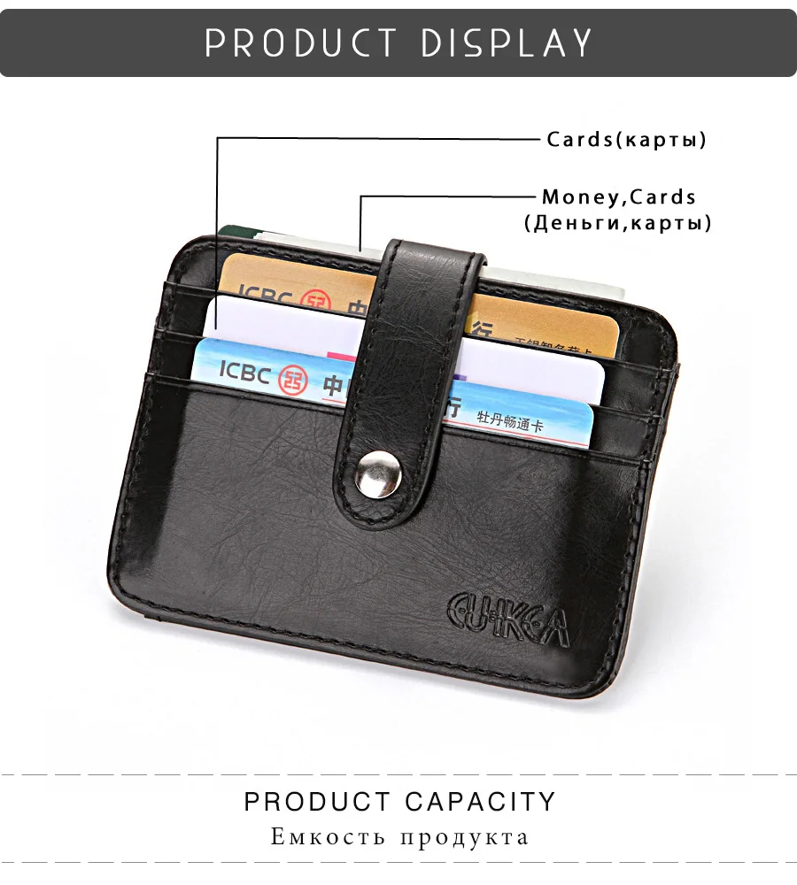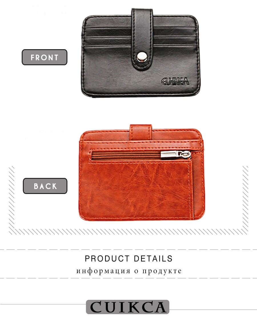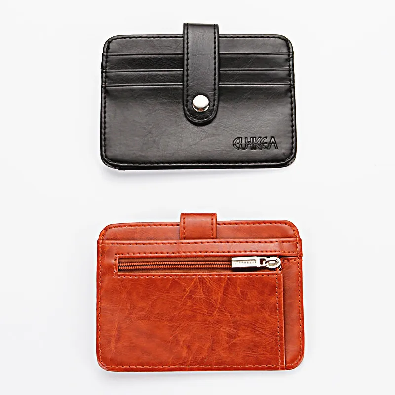 CUIKCA мужской и женский кошелек Carteira унисекс, кожаный тонкий бумажник на молнии, кошелек с застежкой, портмоне, футляр для ID, кредитных карт