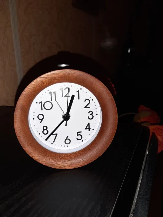 Красивый Деревянный будильник. Ничего не слышно-полный уровень шума. Все работает. На данный момент нет никаких жалоб. Я бы купил его снова.