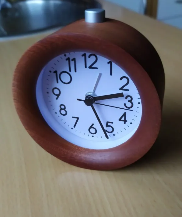 Древесина немного ложная, с другой стороны, она действительно Тихая, в отличие от многих будильников с питанием от батареи. Поэтому он выполняет свою функцию. Нет доставки pbs.