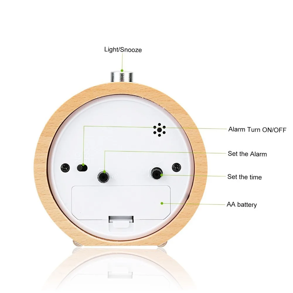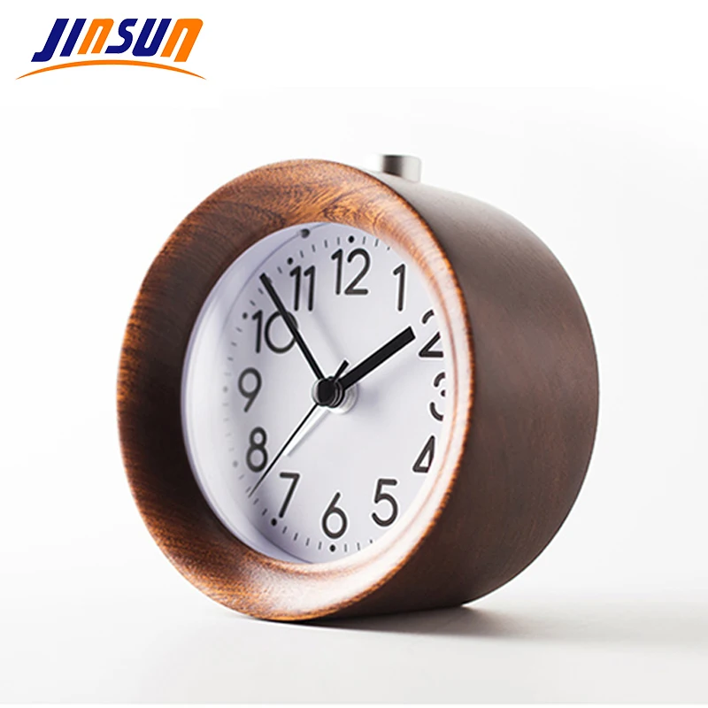 Деревянные часы JINSUN, настольные часы с функцией повтора, прикроватной тумбочки, круговой иглой, подсветкой, бесшумные деревянные часы, не тикающий будильник