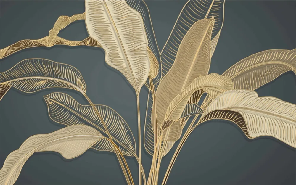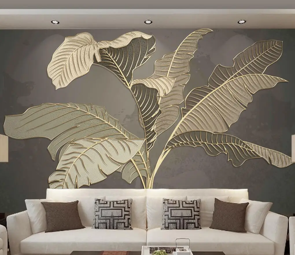 Beibehang пользовательские атмосферные банановые листья роскошные золотые линии рельефные ТВ диван фоновые обои