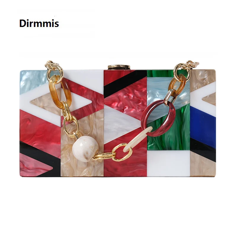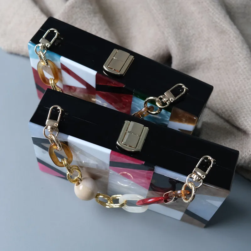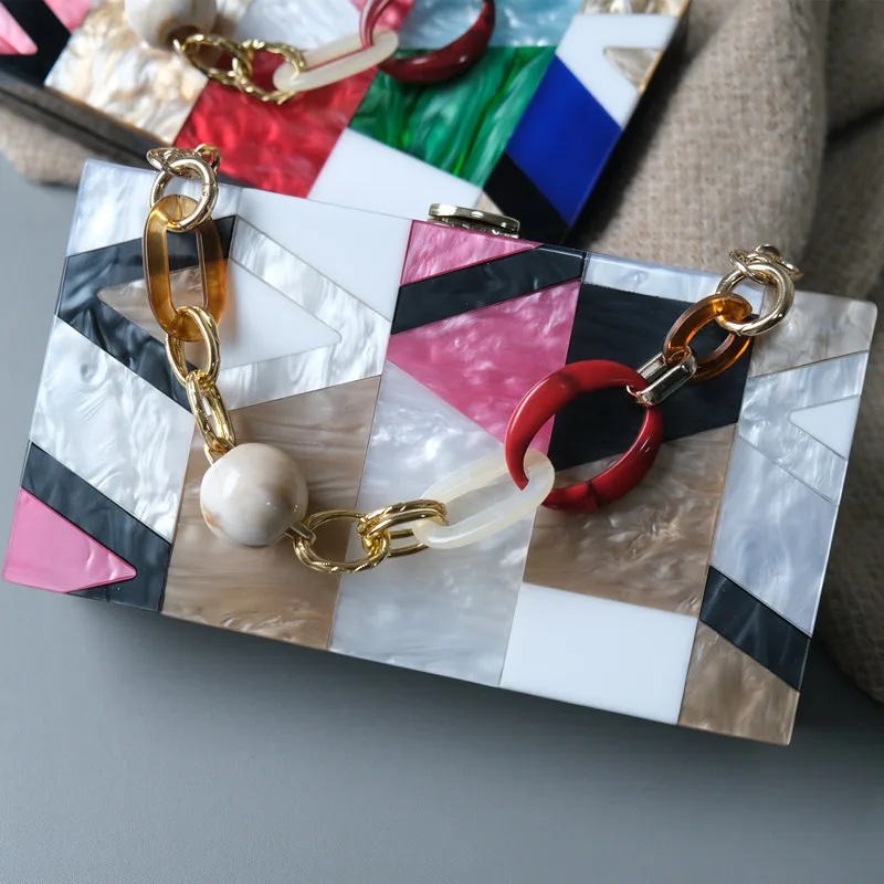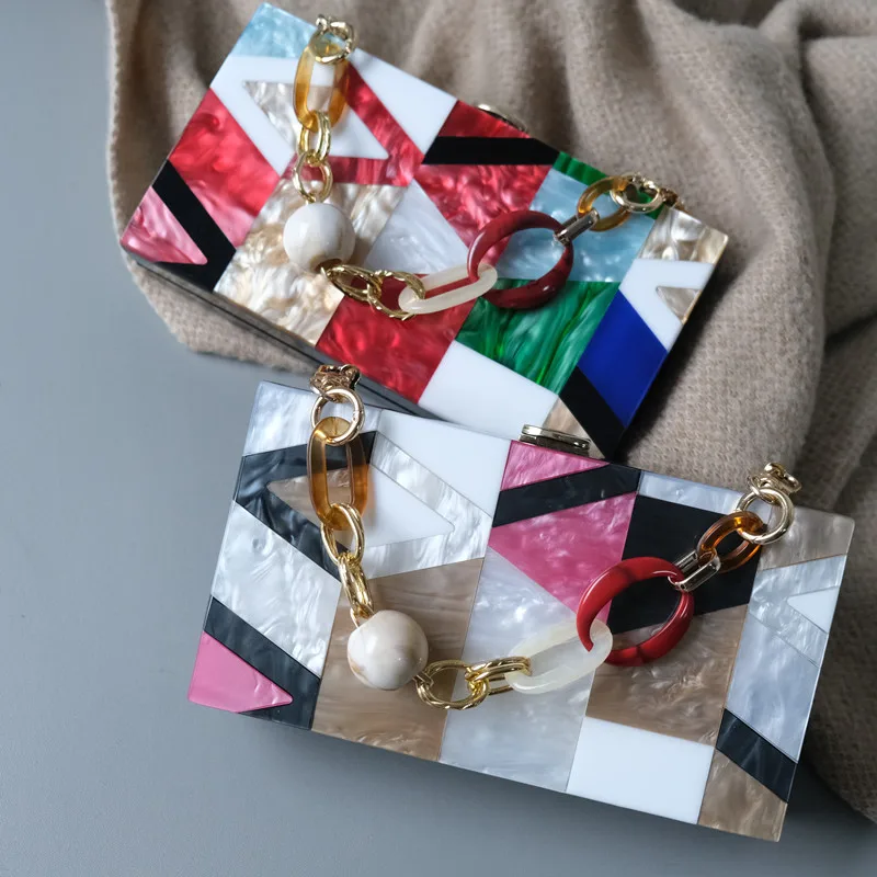 Новый Для женщин Курьерские сумки модные брендовые роскошные акриловые геометрический решетки Лоскутная Сумочка Выходные туфли на выпускной бал клатч женская вечерняя сумочка; BS010