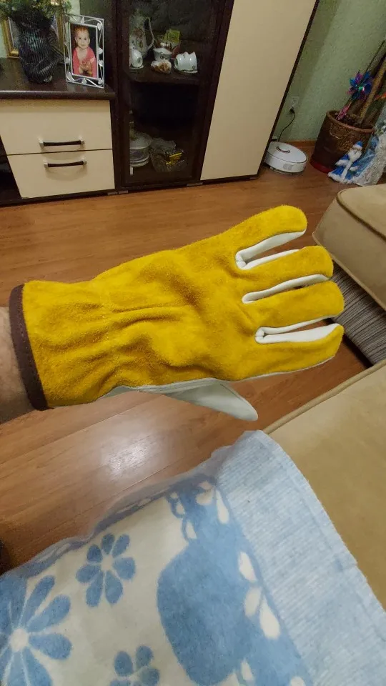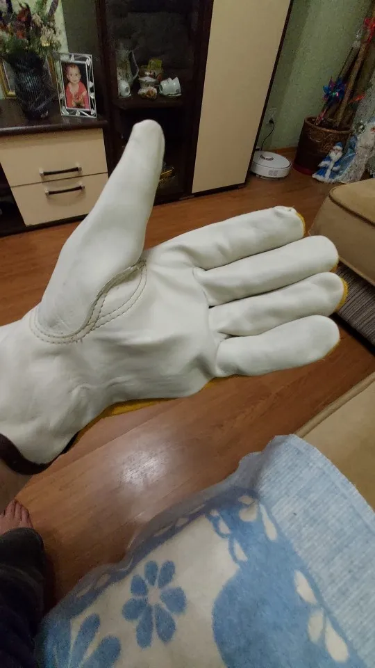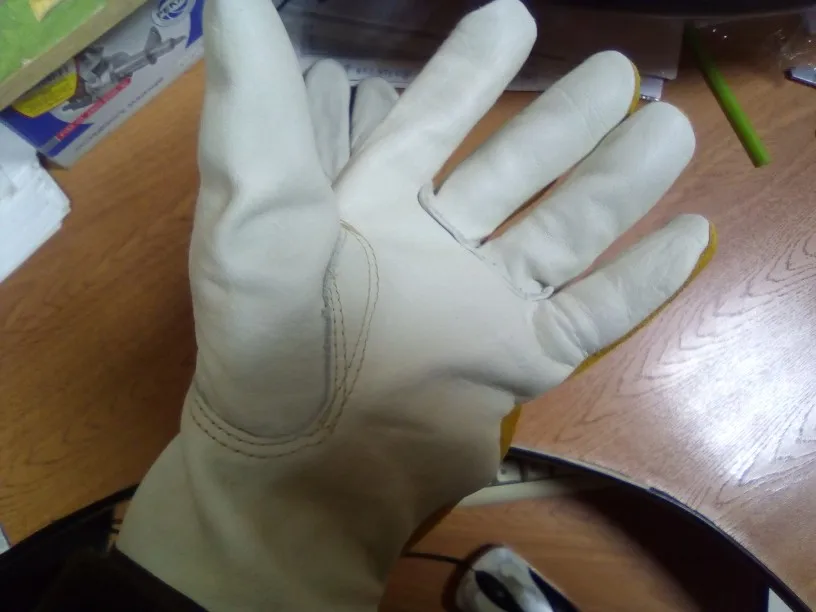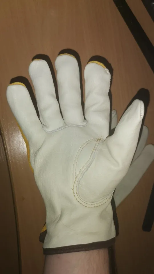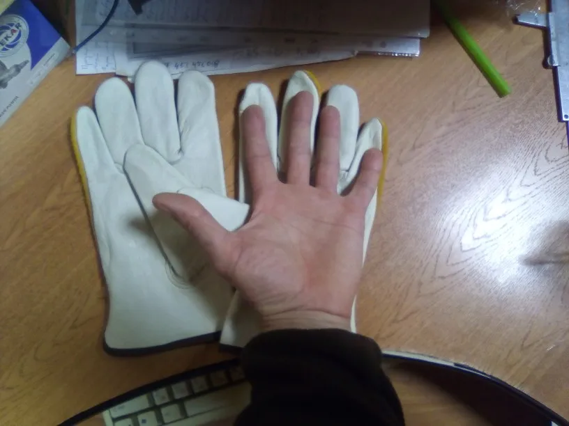Почти два месяца до Бреста. Скажу, так перчатки приятные, но стоят 6.39 доллара.Это дохрена. Для сварки не пойдут, кинуть в машину или вот копал землю в них - да подошли. Лапа у меня большая при росте 1.95 подошли как раз ну может слегана чуть-чуть между пальцами поддавливают, но при работе дискомфорта не ощутил. По пальцам длинна хорошая. На фото как выглядят изнутри. Для примера на фото сварочные краги, которые купил в день, когда эти китайские забирал с почты. Так они стоят 4.5 доллара в Бресте и кожа натуральная(как у китайских верх)+подкладка еще. Думайте сами, китайские качественные, но цена забольшая! Их хорошая цена 3,5-4 доллара.