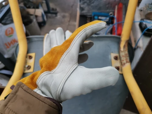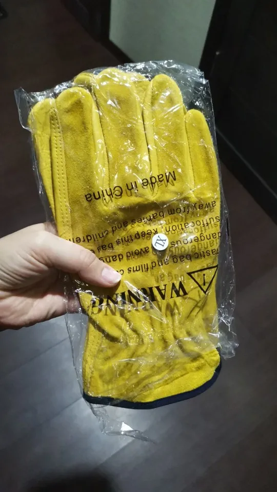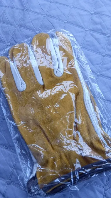 Перчатки пришли быстро, в составе консолидированной посылки. Качество великолепное! Швы ровные, хорошо простроченные, все пальцы ровные, перчатки симметричные. Не идут ни в какое сравнение с теми, что есть у нас в магазинах. К тому же, у меня очень маленькая ладонь, а в магазинах в наличие сплошной XL и XXL, моя рука болтается как глист в скафандре, при этом у большого пальца - жмёт! В этих перчатках очень удобно как сваривать, так и резать болгаркой, придерживать рукой изделие или детали при прихватывании, в труднодоступных местах придерживать электрод. Инструмент не скользит, легко позиционируется в руке. Жалко что перчатки быстро потеряли первоначальный вид, но повреждений пока нет. Пока прошёл месяц интенсивной эксплуатации.