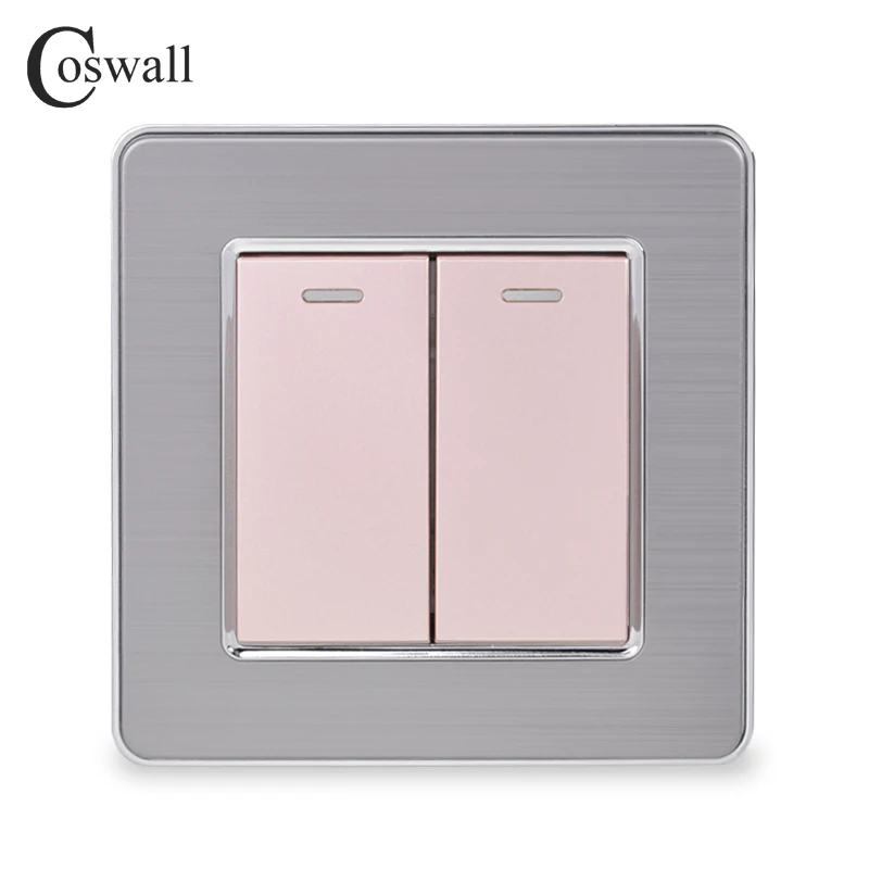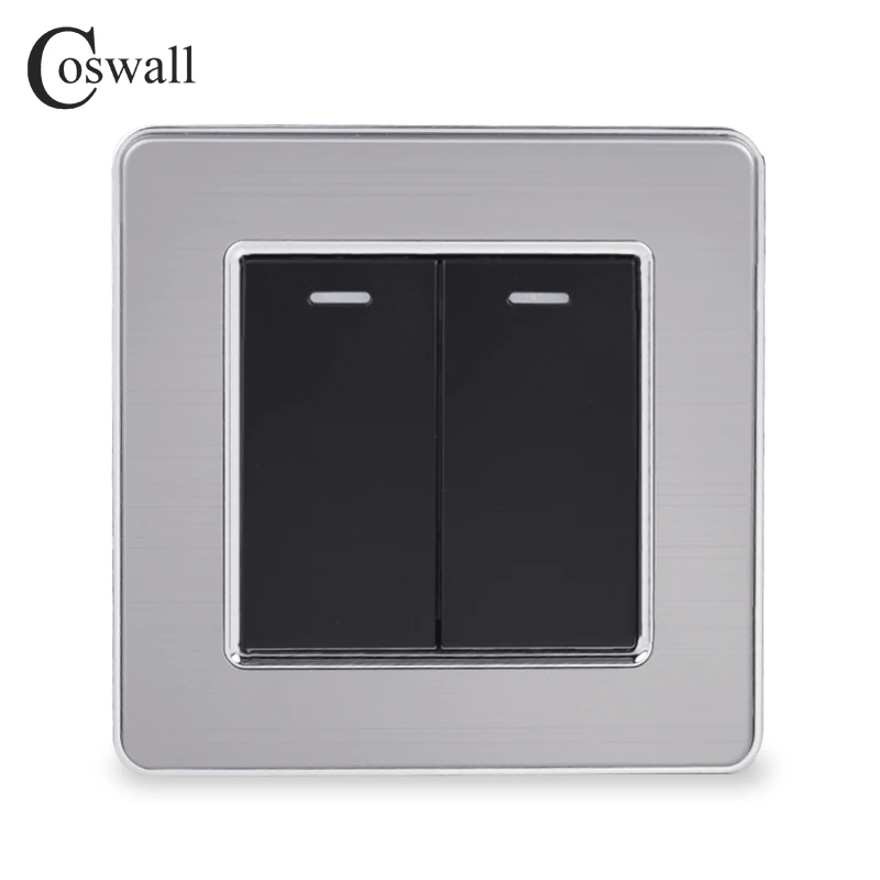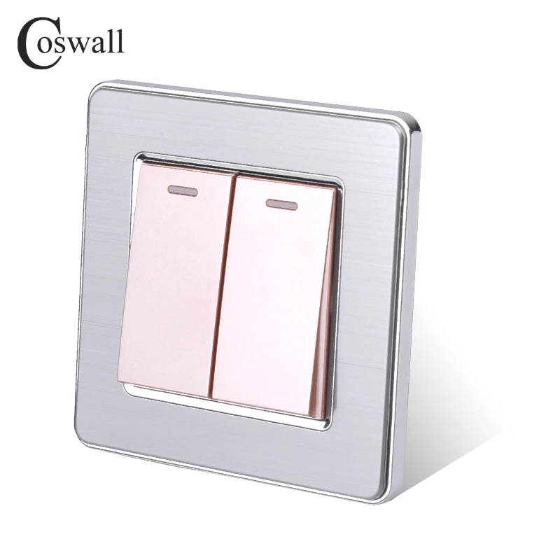 Coswall 2 Gang 2 Way роскошный светильник переключатель On / Off настенный выключатель проходят через прерыватель Нержавеющая сталь Панель AC 110 ~ 250V