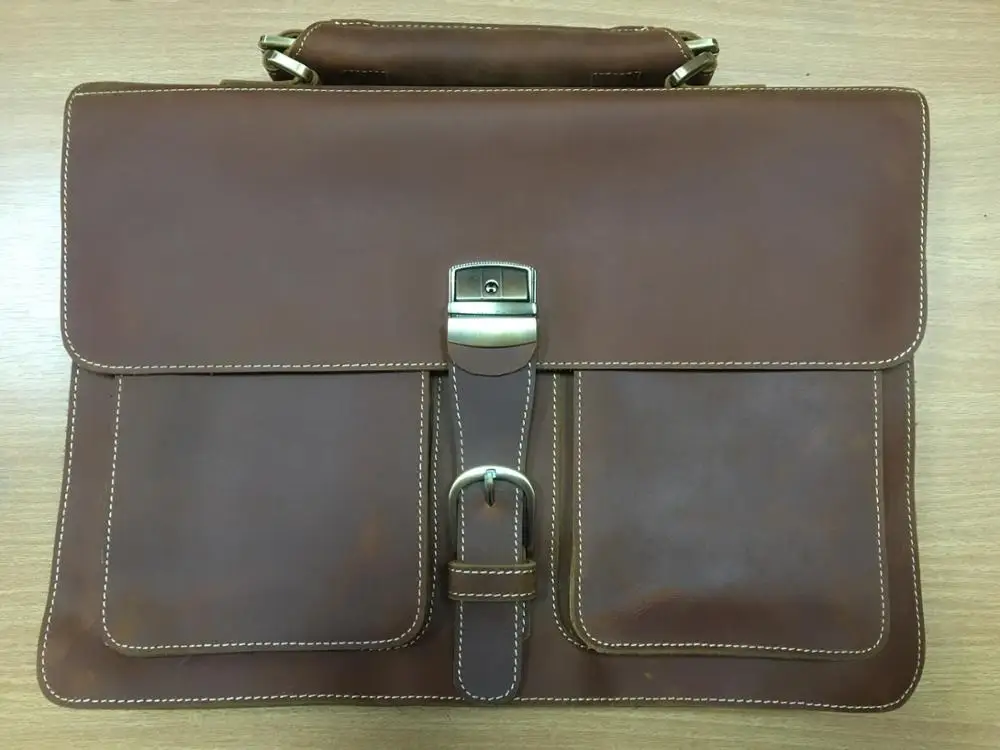 Мужской портфель из коровьей кожи, винтажная сумка для ноутбука, из 100% натуральной воловьей кожи
