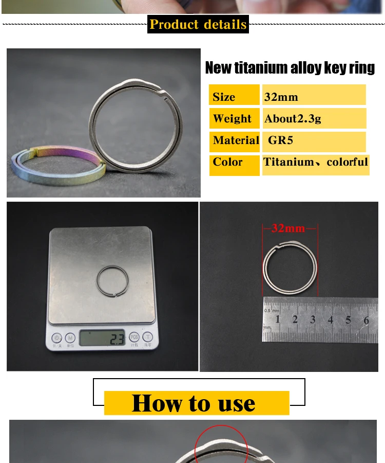 Брелок для ключей из титанового сплава, 18 или 22 мм