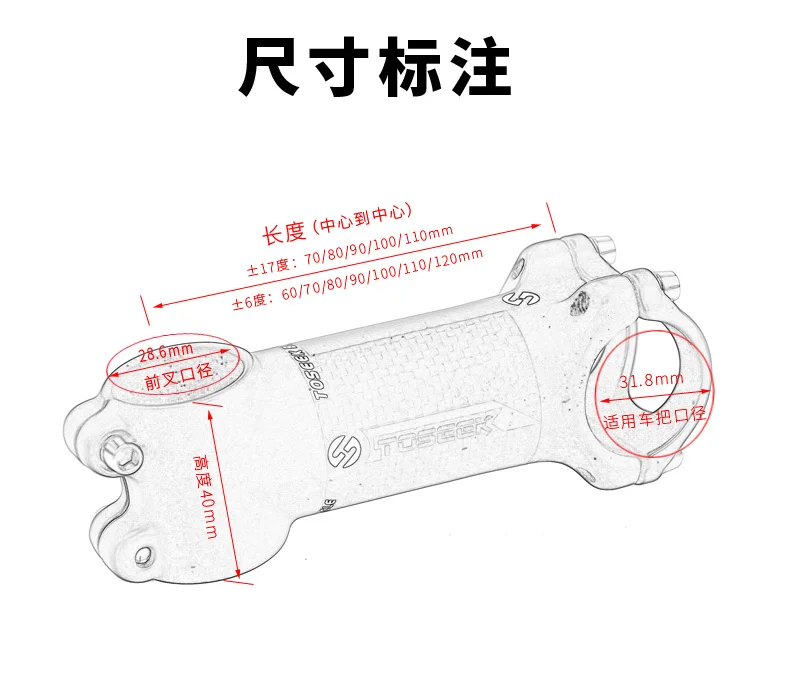 Подставка для штыря велосипеда TOSEEK из углеродного сплава, 6 градусов, 31,8*70 мм80 мм90 мм100 мм110 мм120 мм