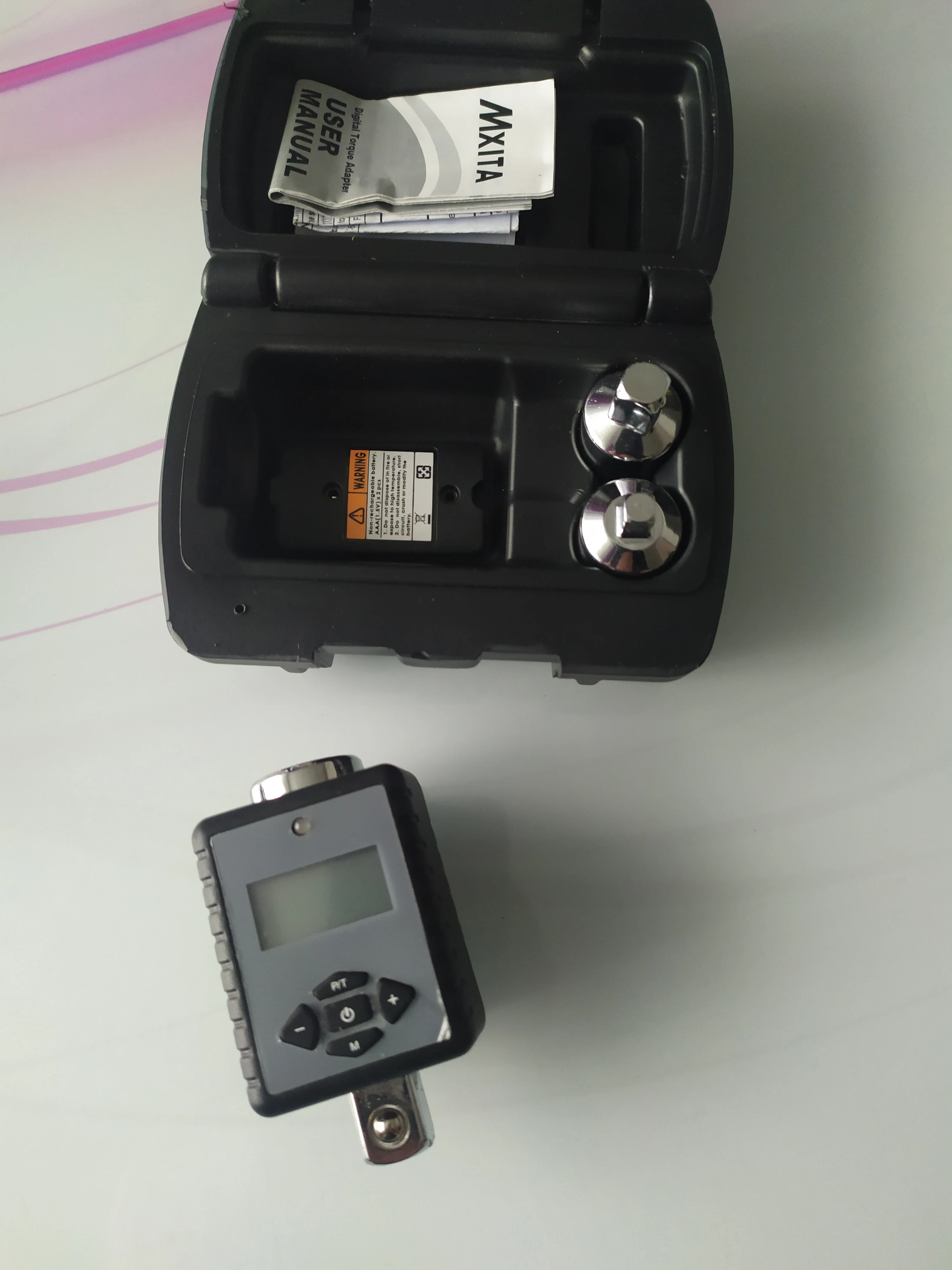 Динамометрический ключ ехал в Киев 26 дней. Пришел без батареек. В комплекте есть инструкция на английском и сертификат калибровки, в котором заявлена точность ± 2%. В режиме Peak прибор измеряет момент затяжки, в режиме Trace информирует о достижении заданного момента. Позволяет удобно ориентироваться по звуку и световому индикатору. Прибор не показывает значения ниже 2 Nm, но может показывать выше 200 Nm, однако превышать не рекомендуется. Насадки очень плотно садятся на квадрат прибора, снять не легко. Не понравилось только то, что в футляре прибор не зафиксирован плотно, болтается. В целом, компактный и удобный инструмент с широкой сферой применения.