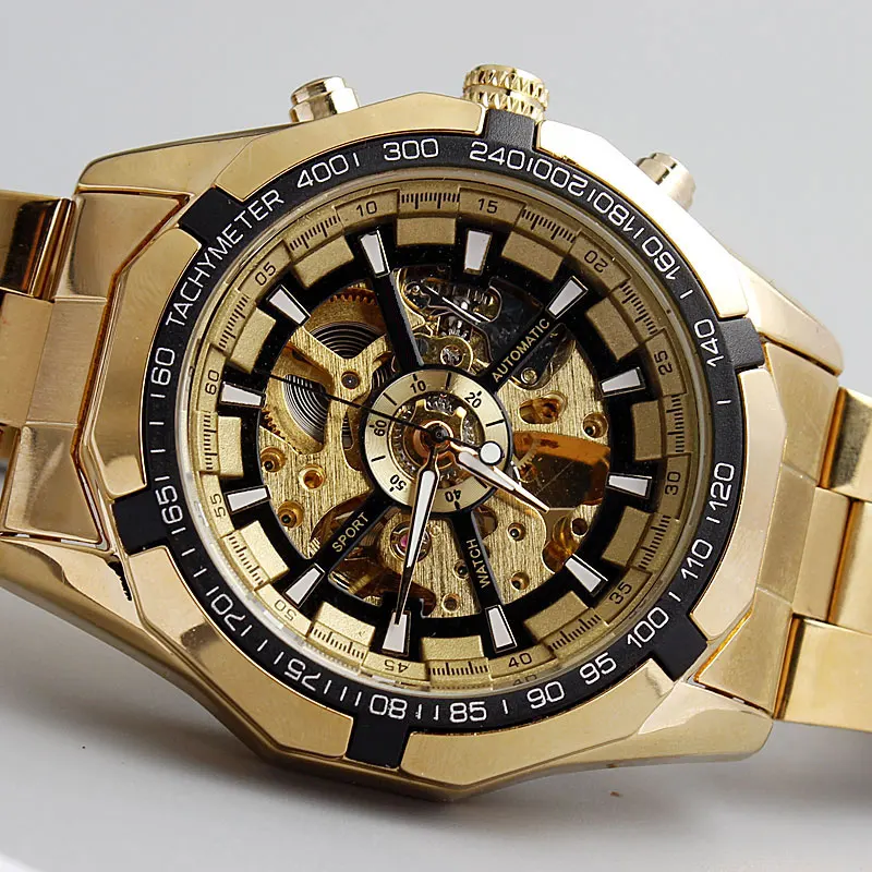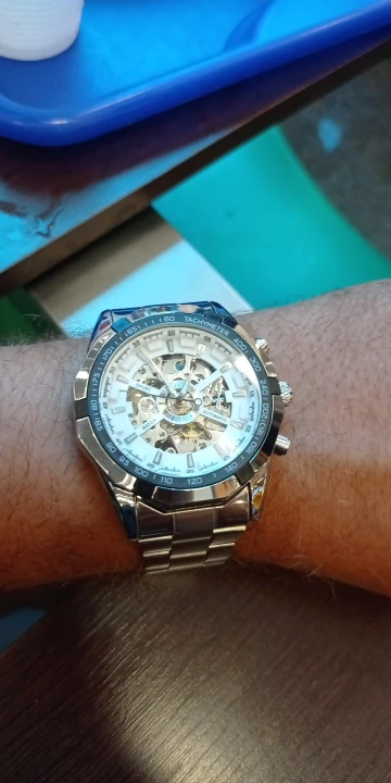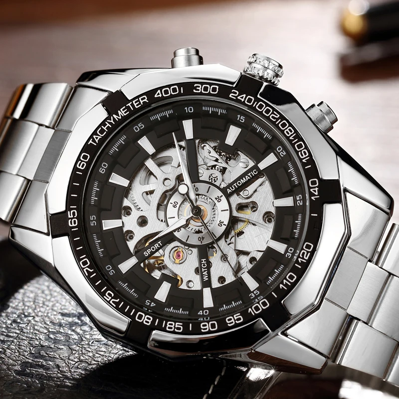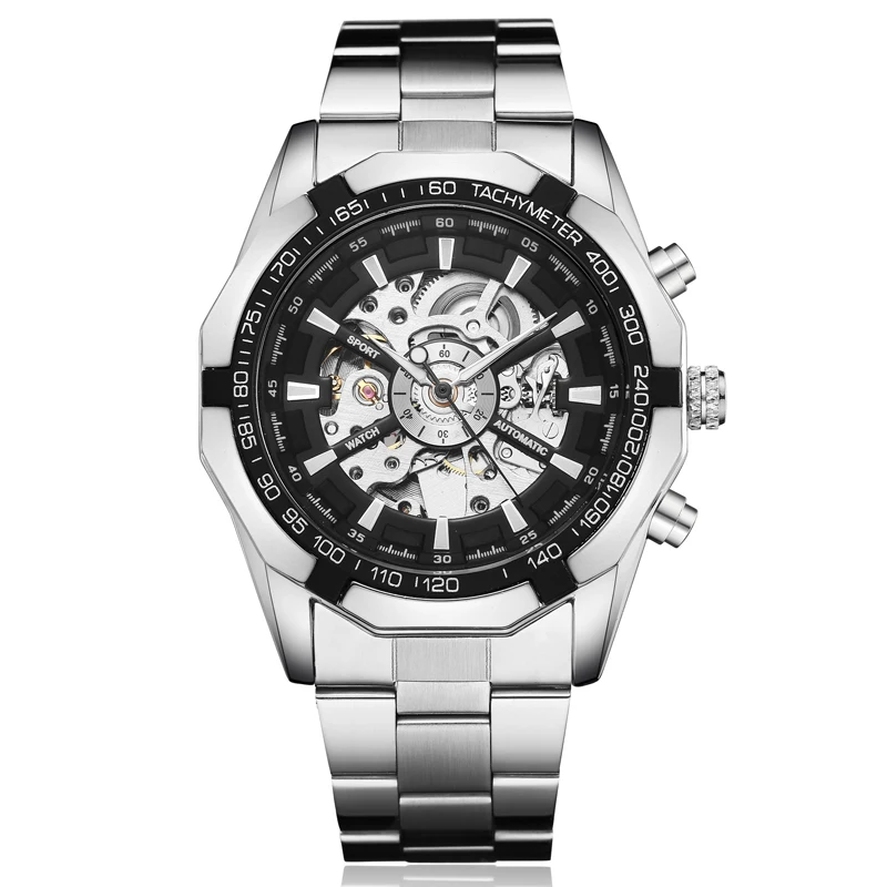 Часы-скелетоны Мужские механические, серебристые, светящиеся, со стальным ремешком