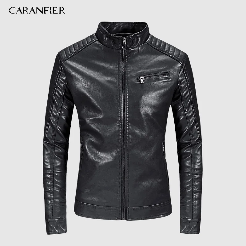 Мужские кожаные куртки CARANFIER, зимнее пальто для мужчин, бархатная верхняя одежда, Байкерская мотоциклетная Мужская классическая военная тактическая куртка из искусственной кожи