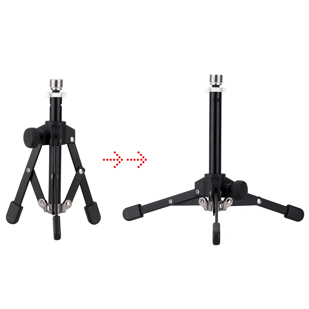 Мини-подставка для микрофона очень подходит для встреч, лекций, выступлений. Оснащен металлическим резьбовым винтом 5/8 "male to 3/8", подходит для большинства стандартных зажимов микрофона. Особенности:Складная конструкция для удобства переноски и хранения.Конструкция штатива обеспечивает исключительную прочность.Нескользящие резиновые ножки для защиты вашего стола от царапин.Оснащен металлическим резьбовым винтом 5/8 "male to 3/8", подходит для большинства стандартных зажимов для микрофона. (зажим для микрофона не входит в комплект.)С клатчем, который поможет вам зафиксировать подставку, более стабильным.Изготовлен из высококачественного железа, прочный и прочный.Подходит для встреч, лекций, выступлений и т. д. Характеристики:Материал: железо, ПВХ и нейлонВес изделия: 187 г/6,6 унцийРазмер посылка: 17*7*7 см/6,7*2,8*2,8 дюймовПосылка Вес: 190g/6,7 oz Примечание:Держатель микрофона и микрофон, показанные на фотографиях, в комплект не входят. Посылка:1 * подставка для микрофона1*5/8 "Папа до 3/8" женский винт