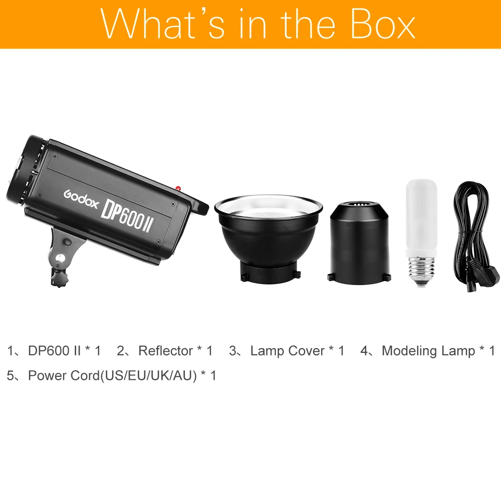 Профессиональный студийный стробоскоп Godox DP600 II 600Ws GN80 со встроенной беспроводной системой Godox 2,4G предлагает креативную съемку