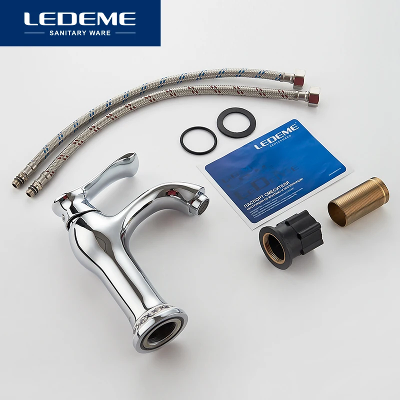 LEDEME Смеситель для умывальника с гайкой латунь Цвет: хром L1041-2