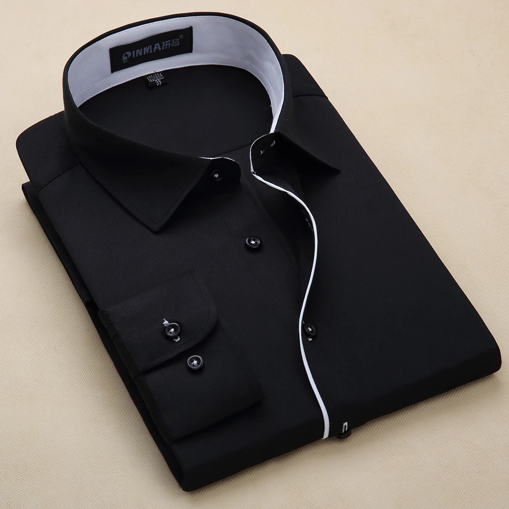 Мужская однотонная хлопковая рубашка с длинным рукавом, деловая формальная Классическая рубашка с саржевым переплетением, 2017