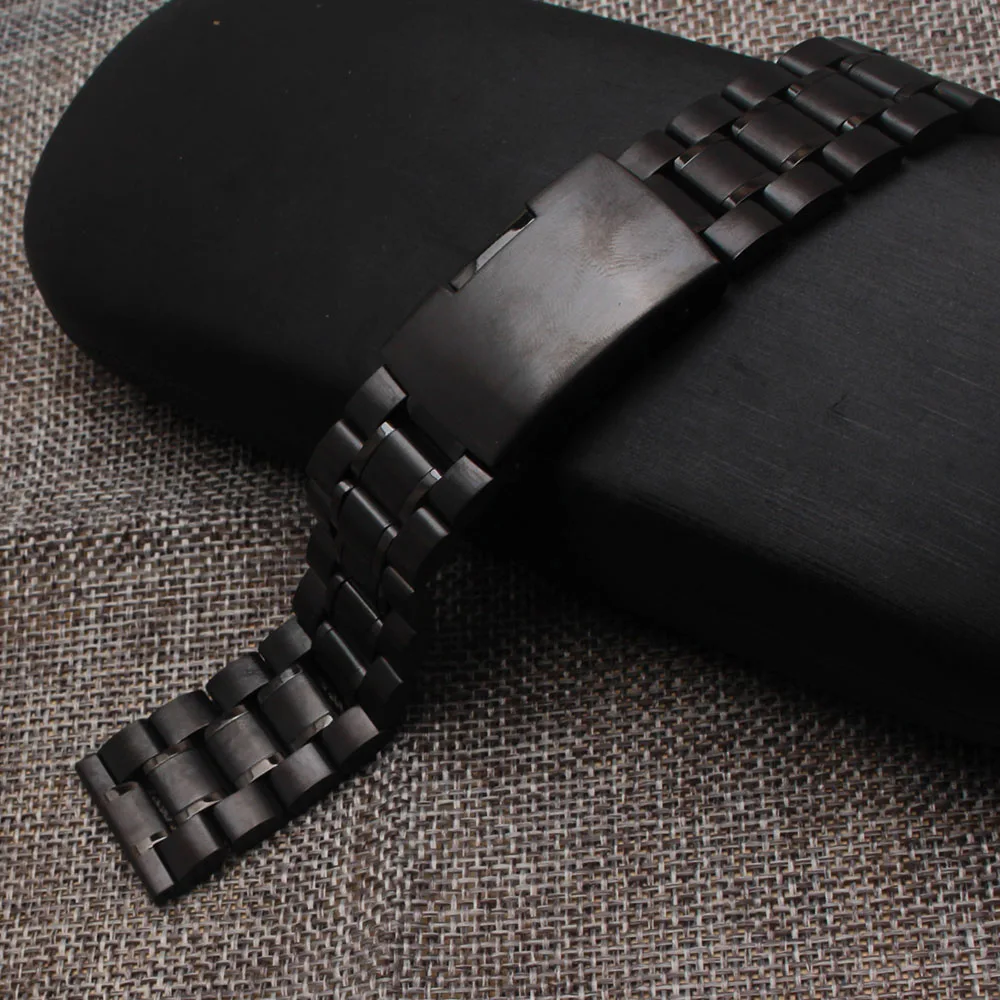 Ремешок для часов, черный, 18 мм, 20 мм, 22 мм, 24 мм, нержавеющая сталь, металлический ремешок, браслет с одной боковой кнопкой, прямой конец, аксессуар для наручных часовНаименование товара: металлический ремешок для часов