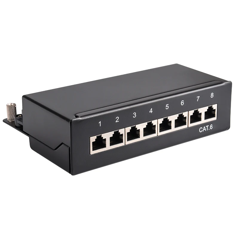 Настольная 8-портовая коммутационная панель Mini CAT 6, полностью экранированная, доступна для настенного монтажа (нижняя пластина с отверстиями для крепления к стене)