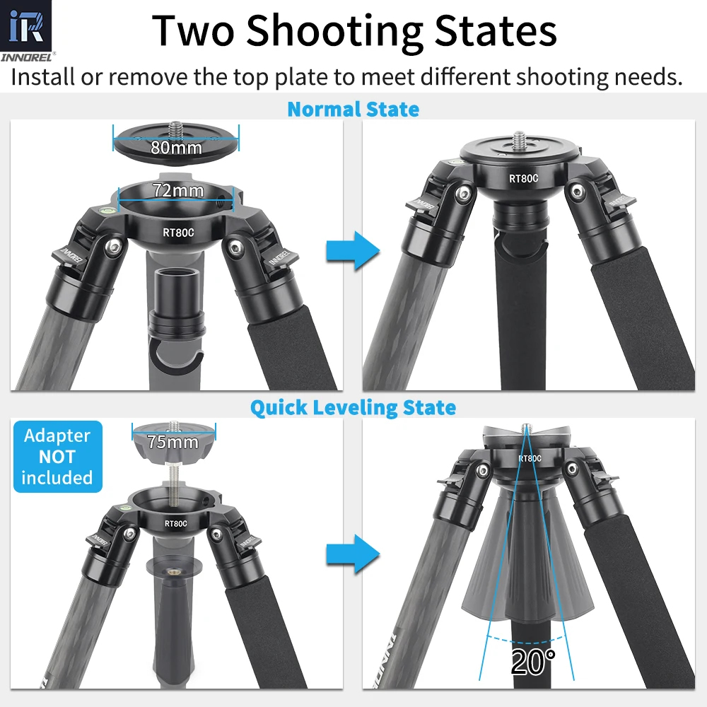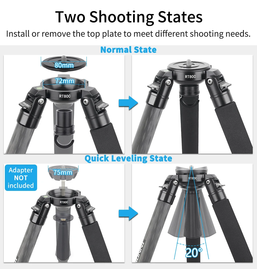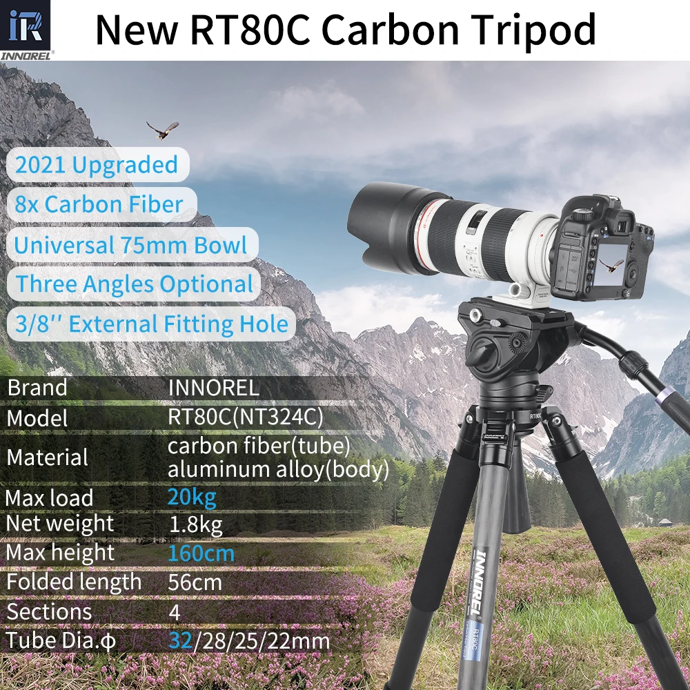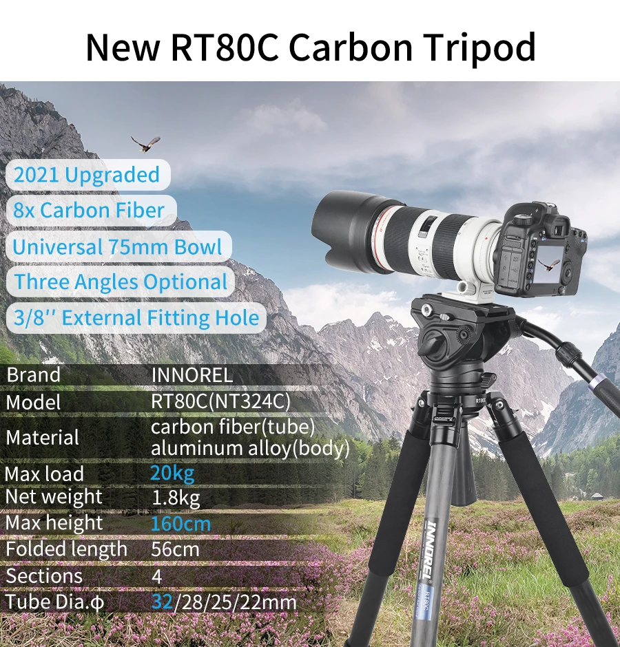 Профессиональный штатив RT80CNT324C из углеродного волокна для DSLR-камеры, видеокамеры, наблюдения за птицами, сверхмощная подставка для камеры с чашей 75 мм