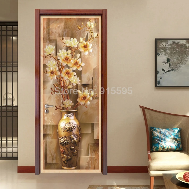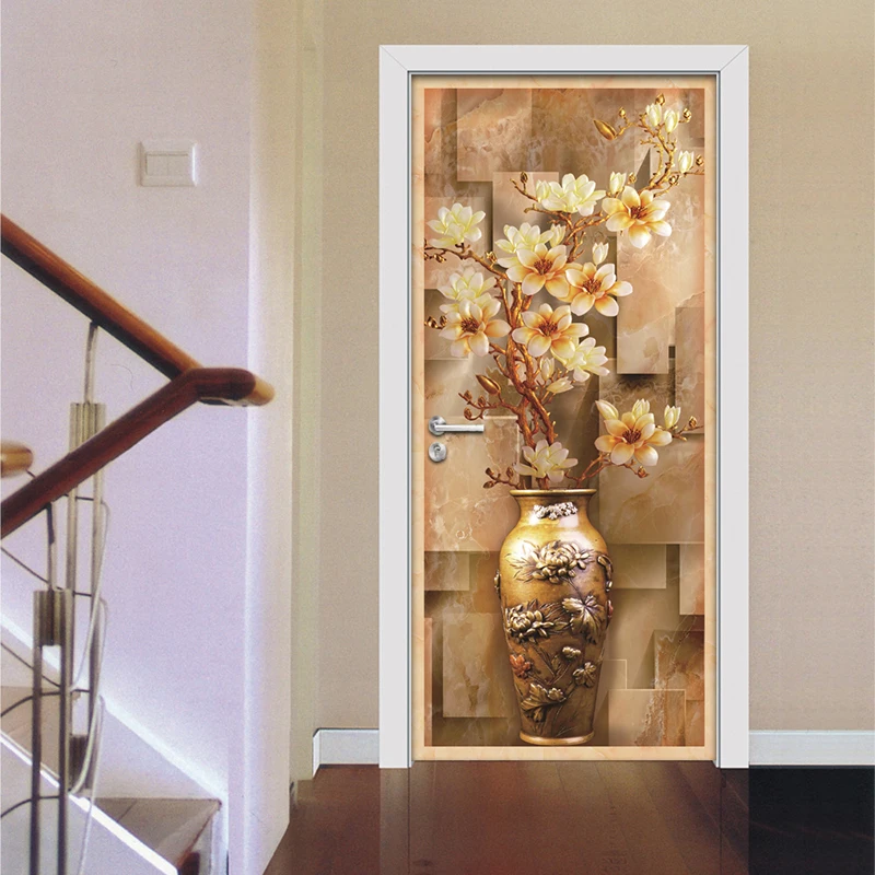 3D стереоскопическая Европейская ваза для магнолии, Настенные обои из ПВХ, водонепроницаемые самоклеящиеся декоративные наклейки для спальни, гостиной