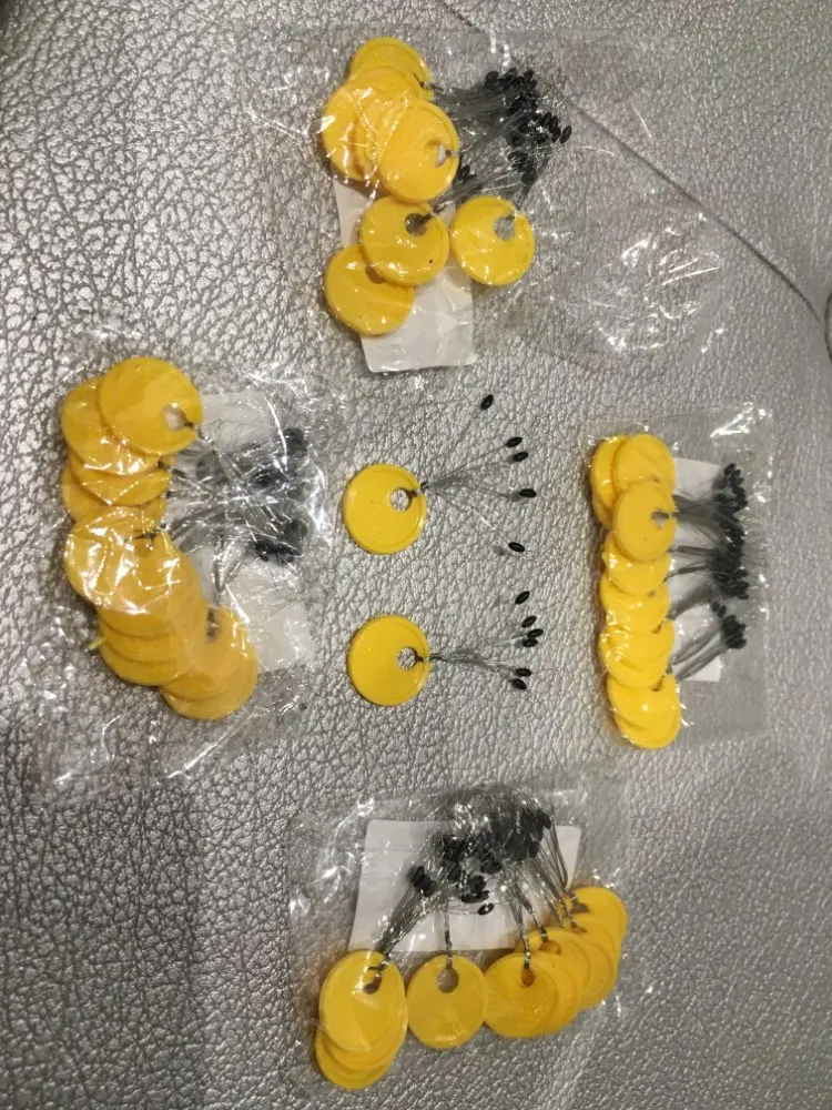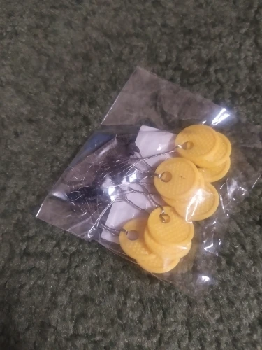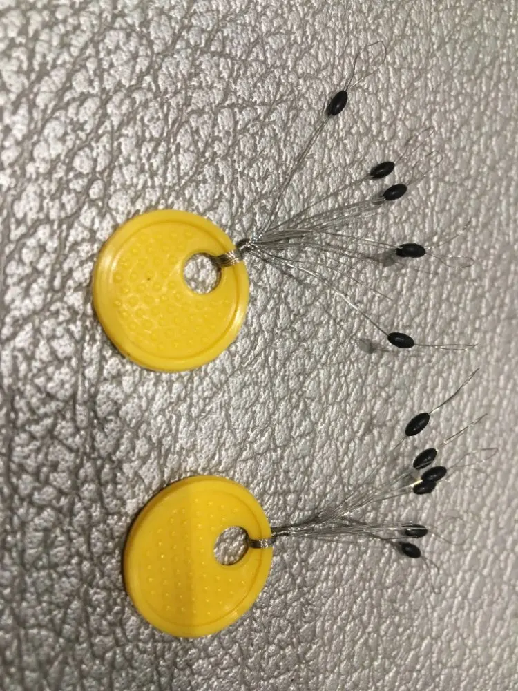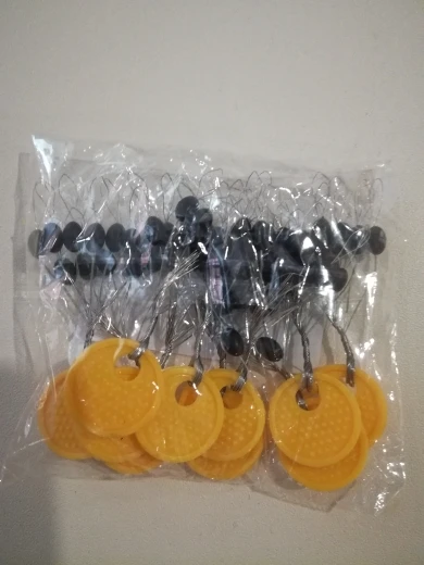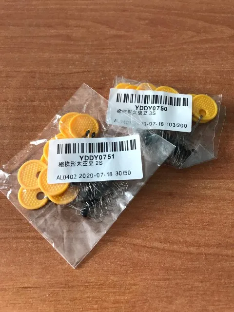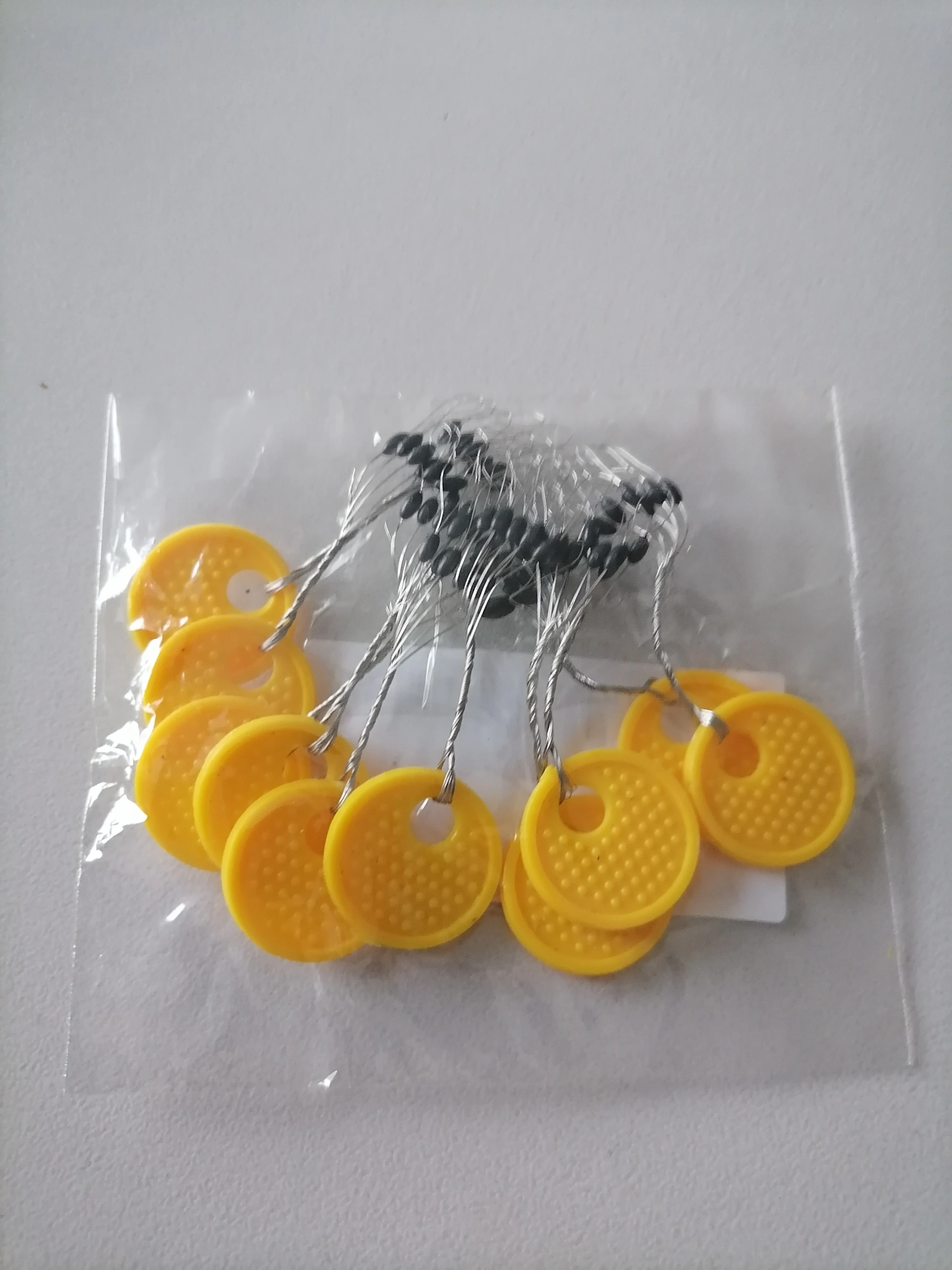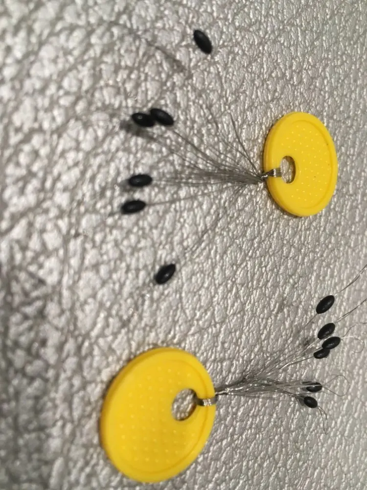 Стопорки, как в описании. Очень маленькие, на самую тонкую леску.