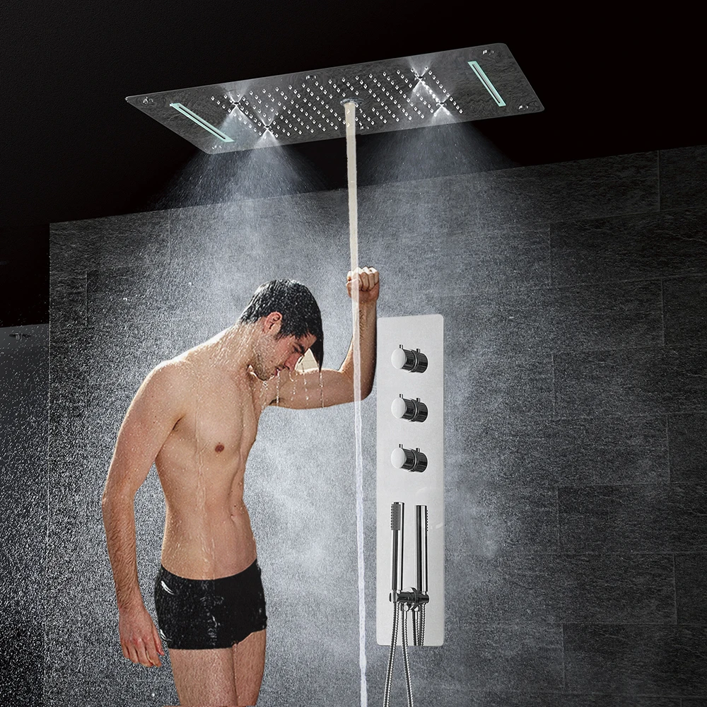 Душевая система с термостатом, светодиоды для потолка в душе насадок, набор для душа, настенный, из нержавеющей стали