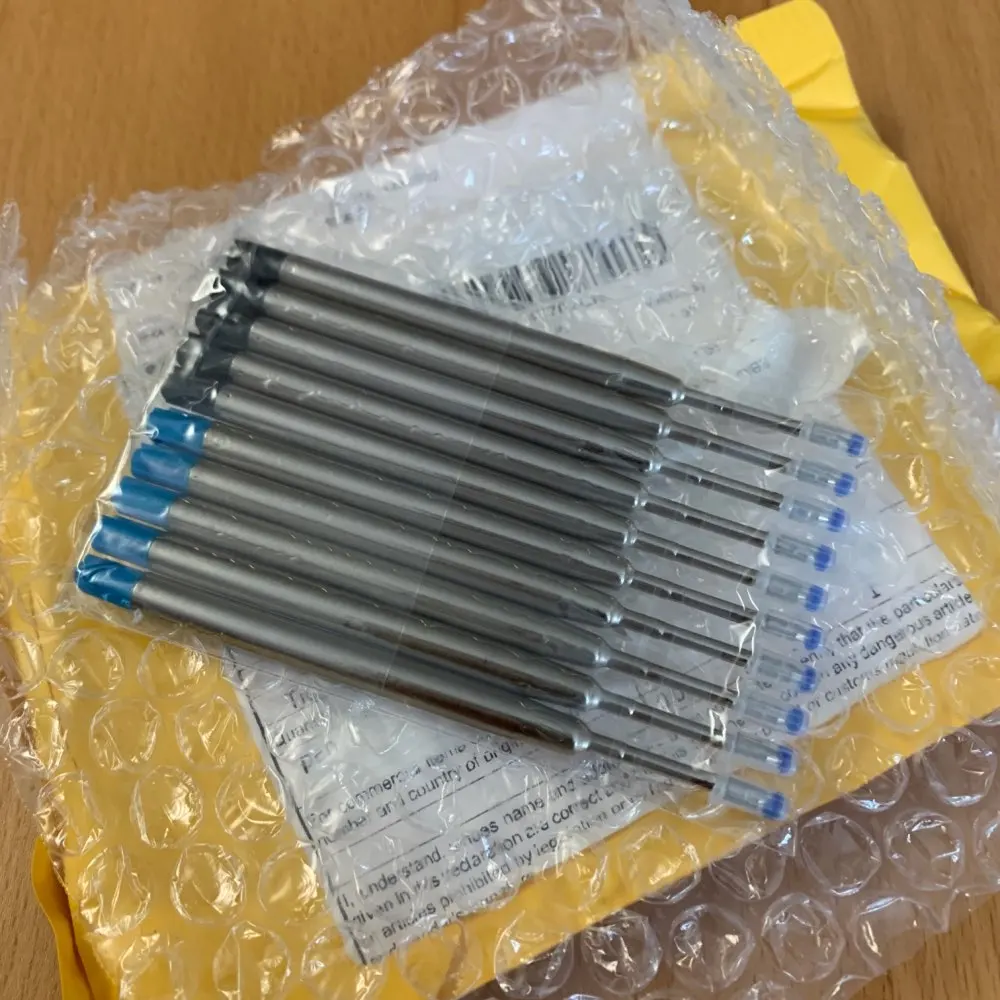 Очень хорошо упаковано, включая защитную крышку для наконечников. Записывает очень гладкий и хороший поток чернил. Хорошо подходит для ручки. Я обязательно куплю этот товар снова. Цена Фантастическая.