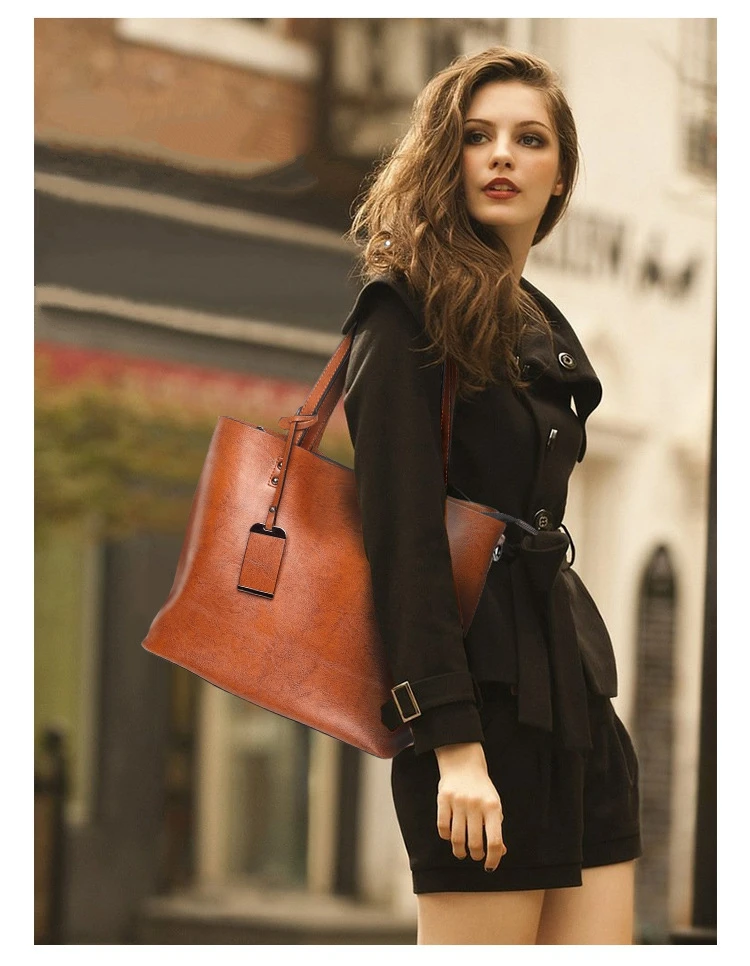 Women HandbagDesigner Brand High Quality Oil Wax Leather Women Handbag Shoulder Bag