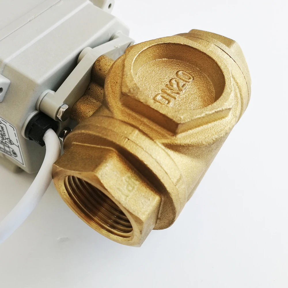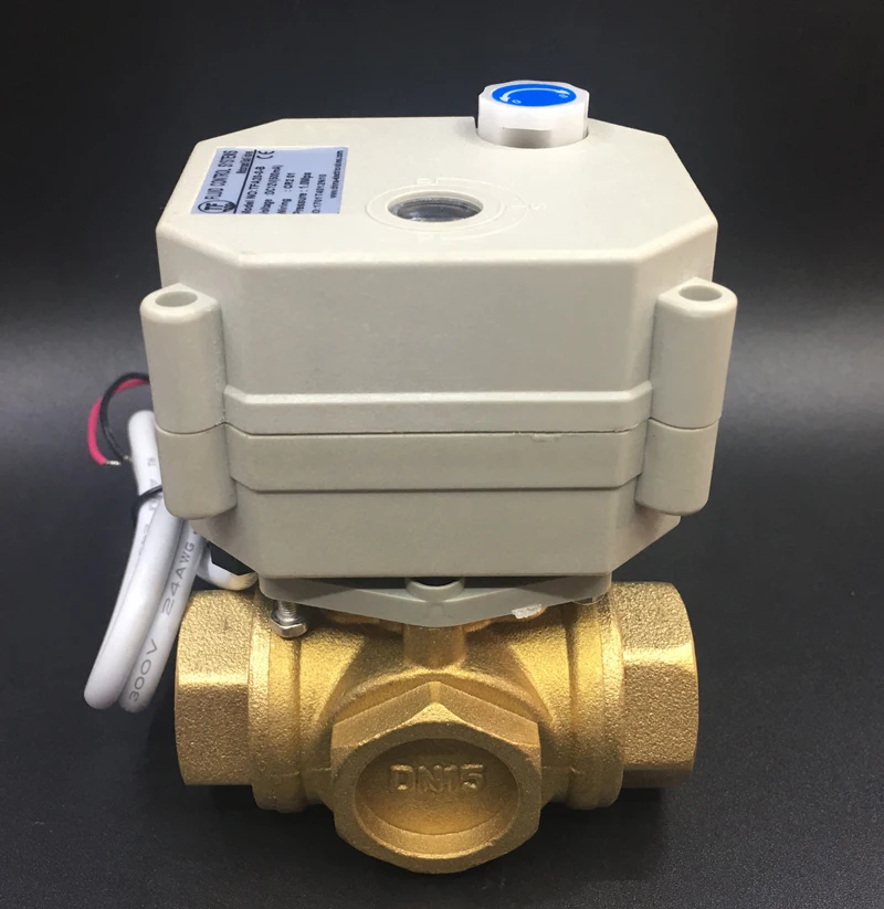 TF20-BH3-B ACDC9V-24V 3 провода латунь 34 ''DN20 3 Way TL тип горизонтального управления потоком Электрический моторизованный шаровой клапан