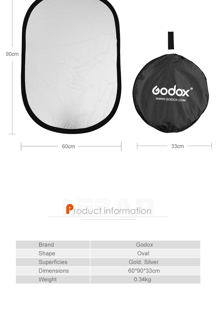2 в 1, складной Круглый отражатель Godox, 60x90 см, 80 см, 110 см, 100x150 см, 150x200 см