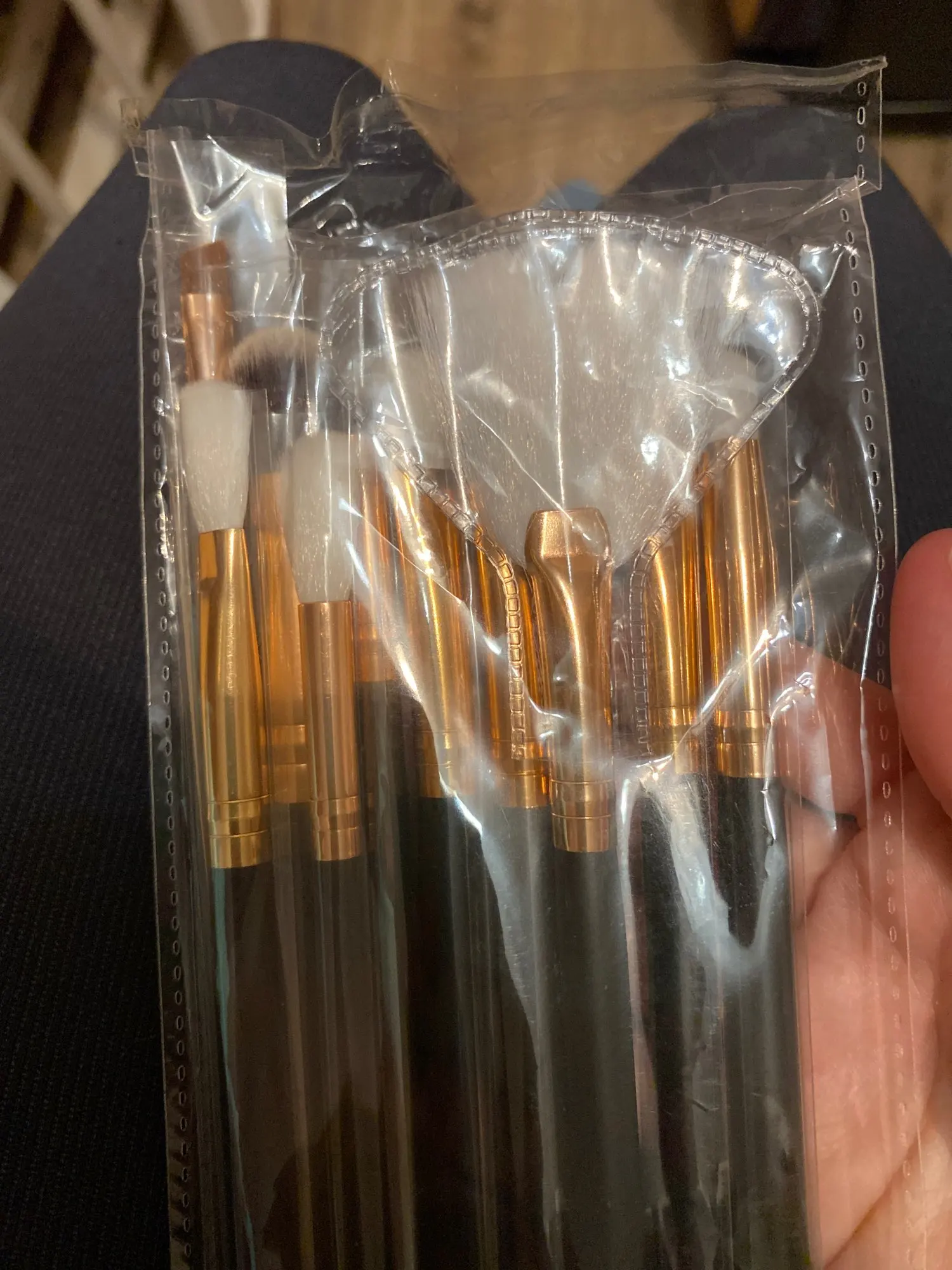 Продавец внимательный, отвечает сразу. Товар пришёл быстро. Кисти мягкие, но плохо набитые. Растушёвка будет даваться тяжело. Три кисти из набора не скреплены с основой, не проблема если есть горячий клей, приклеила. Косметичка под кисти хорошая, без брака. Запаха нет.