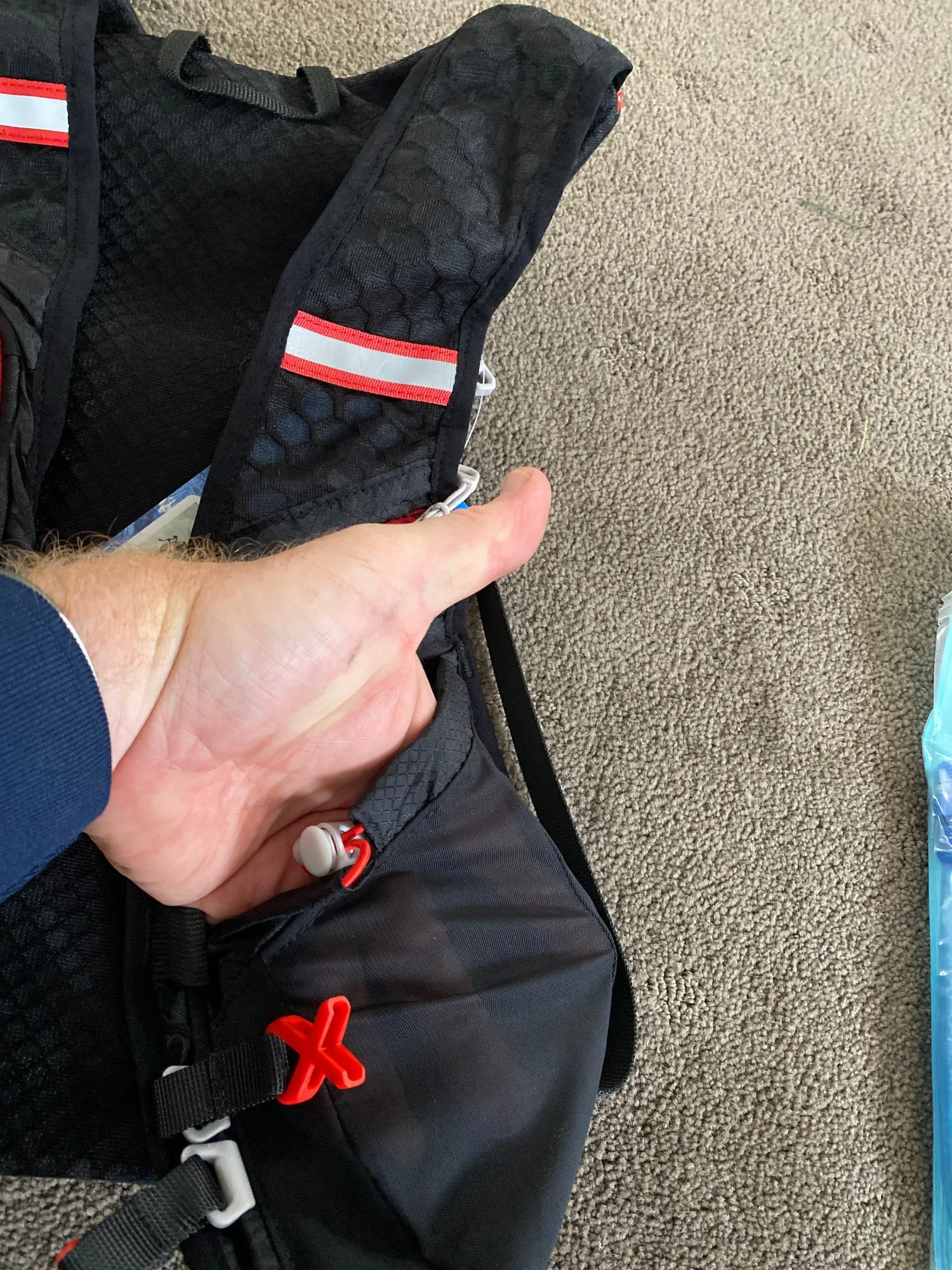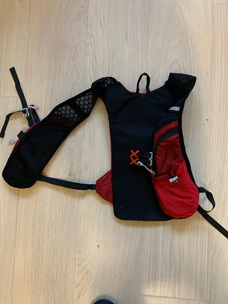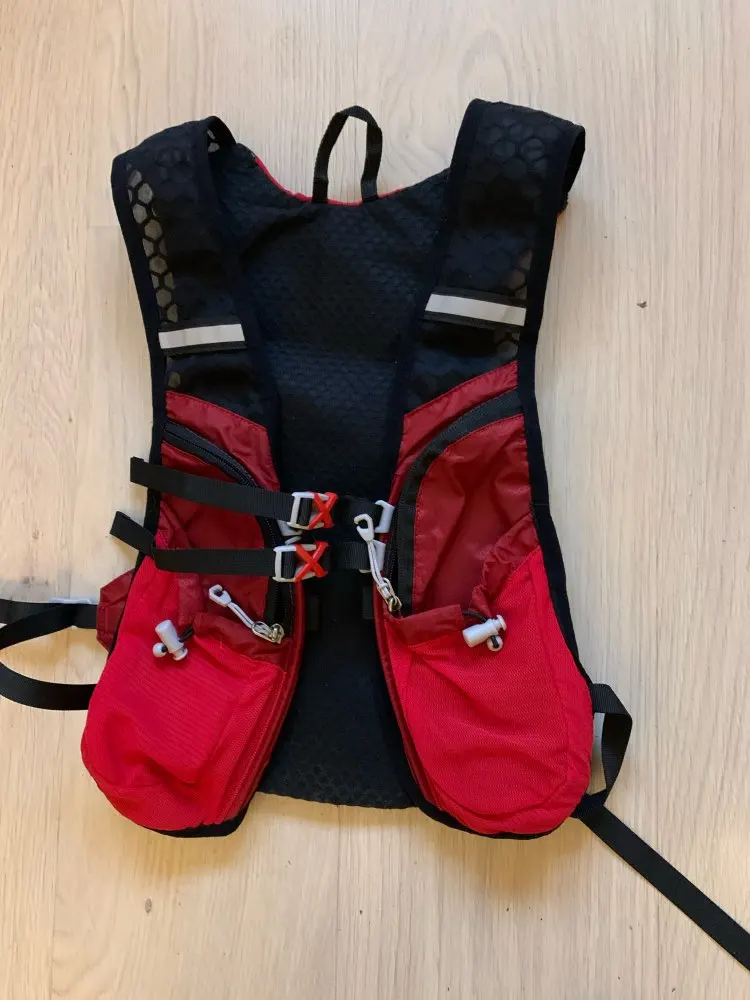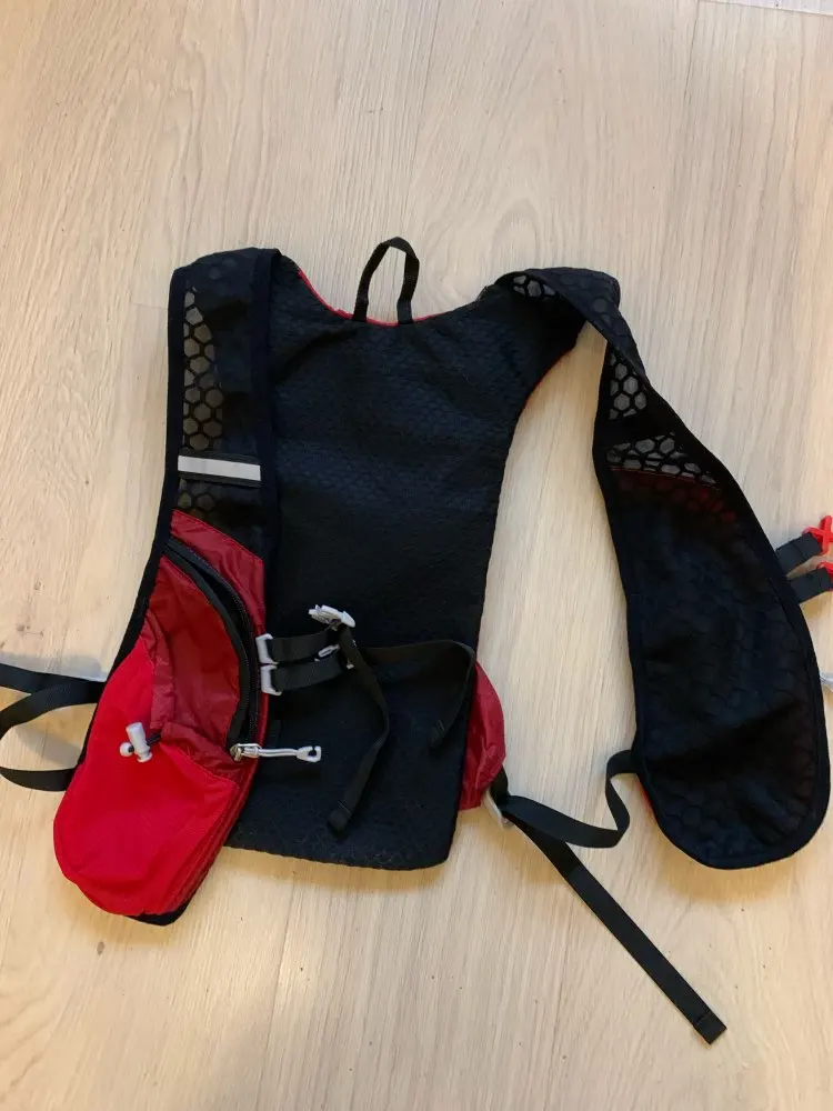 Отличная сбруя! Дошла быстро. В большие карманы спереди влезает 0.5 л бутылка. Гидратор удобный, без посторонних запахов. В полевых условиях показал себя прекрасно - удобно настраивается лямками, на теле не болтается, вода в гидраторе не протекает и греется на от тепла спины. Маст хэв! Всем бег!