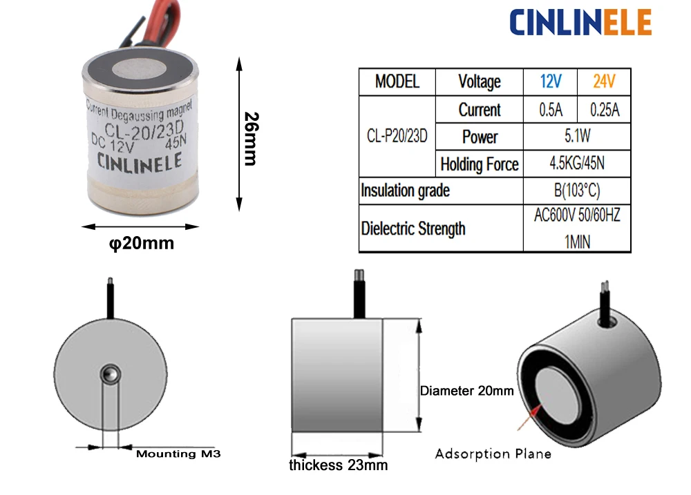 D20mm * H23mm токовый Электромагнит Degauss, магнитный электромагнитный присоска, постоянный ток 12 в 24 В, мощный редкоземельный