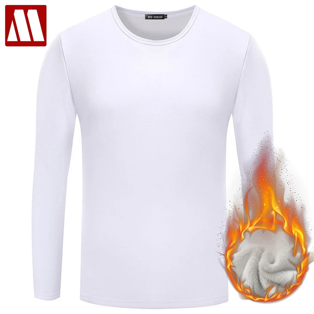 Мужская повседневная хлопковая Футболка 2022, модное облегающее термобелье с длинным рукавом, однотонные футболки, мужская зимняя ФЛИСОВАЯ ФУТБОЛКА, Мужская футболка