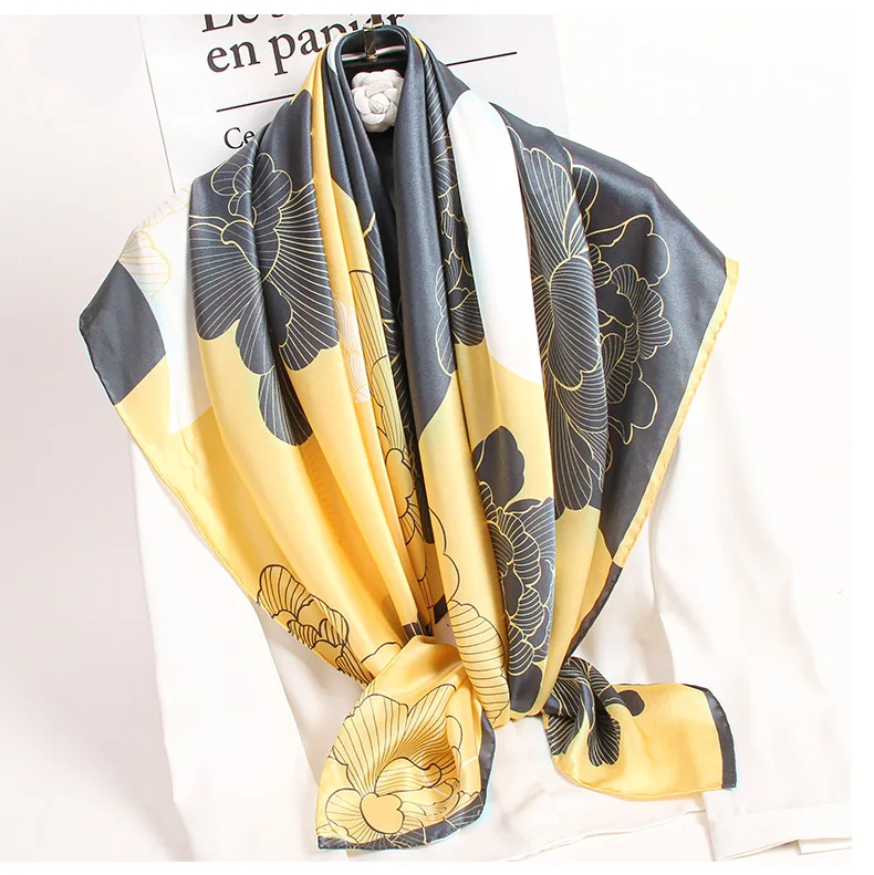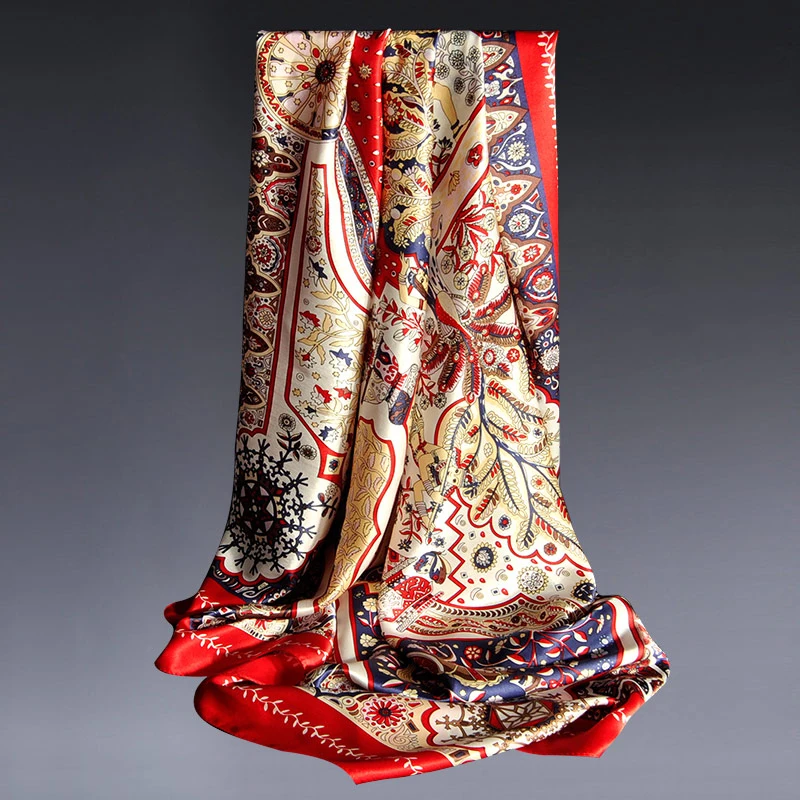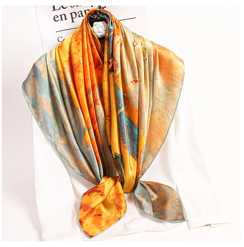 Шарф квадратный Женский, брендовая большая бандана, шарф из натурального шелка с принтом для мам, 100% * 110 см, 110