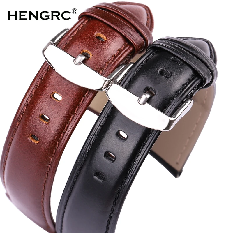 Черные коричневые Ремешки для наручных часов 18 мм 19 мм 20 мм 21 мм 22 мм 24 мм Высокое качество Гладкий Ремешок для часов с пряжкой