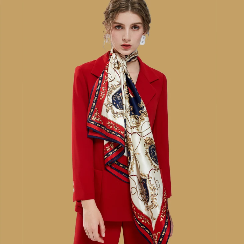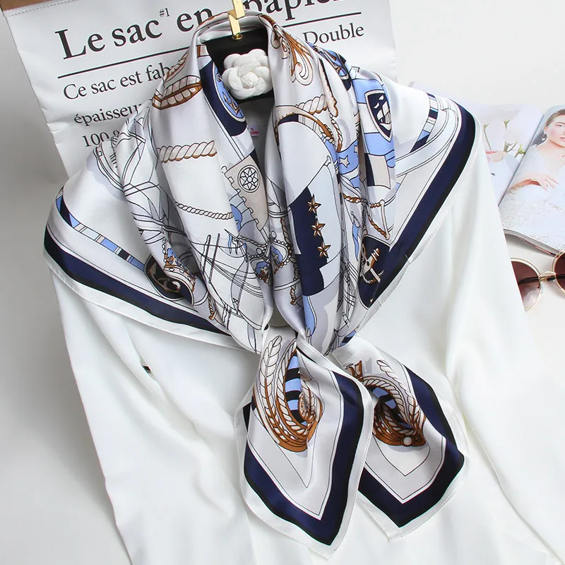 Шёлковый шарф квадратной формы 88*88 см бандана Для женщин 2021 чистый шелк с рисунком Повязки На Голову Обертывания Дамский платок 100% натуральный шелк квадратный шарфы для женщин