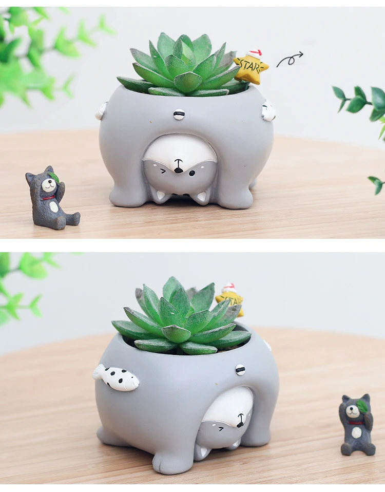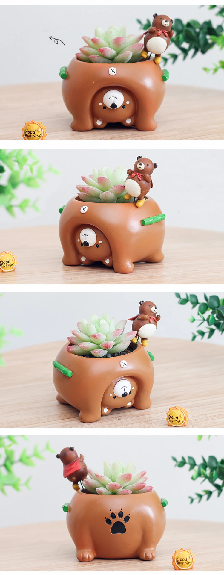 Цветочные горшки с рисунком животных, кастрюли ручной работы из смолы для суккулентов, настольные цветочные горшки, украшение для дома и сада