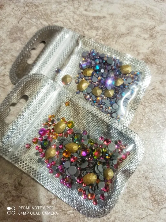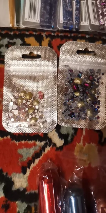 Вообще пришло не то что заказывала. В одном пакетике стразы красивые и их можно использовать в дизайне, а во втором пакетике какие то непонятные сердечки в виде мармеладок , покрытых сахаром. К тому же они настолько крупные, что их и не приляпаешь никуда. Разочарована. 114 рублей они явно не стоят.