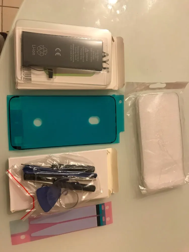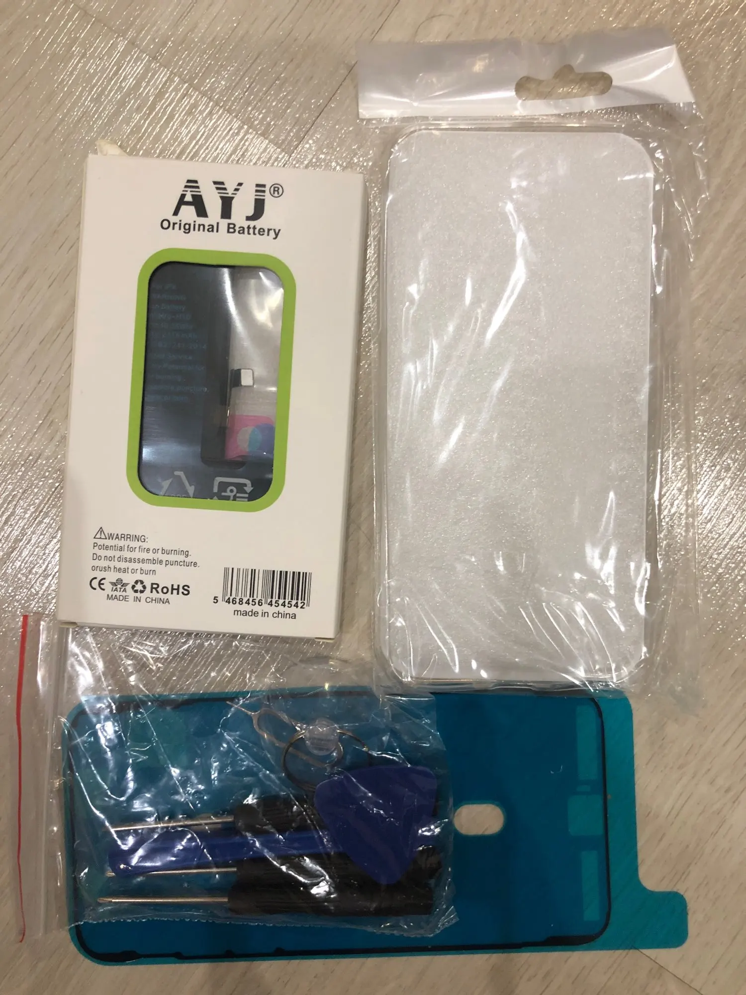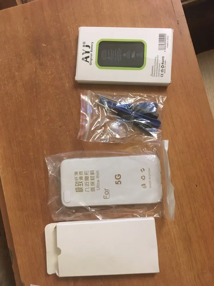 Товар на айфон SE пришёл в Самару за 3 дня. Из России заказал. В наборе отвёртки, клейкие ленты. В подарок прозрачный силиконовый чехол. Если правильно заряжать/разряжать аккумулятор, все работает. Меня устроил.