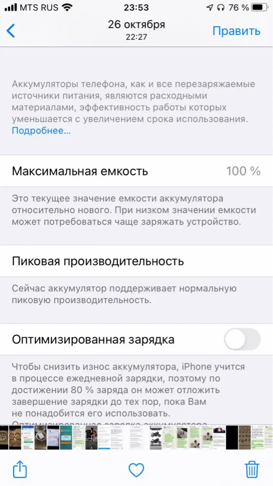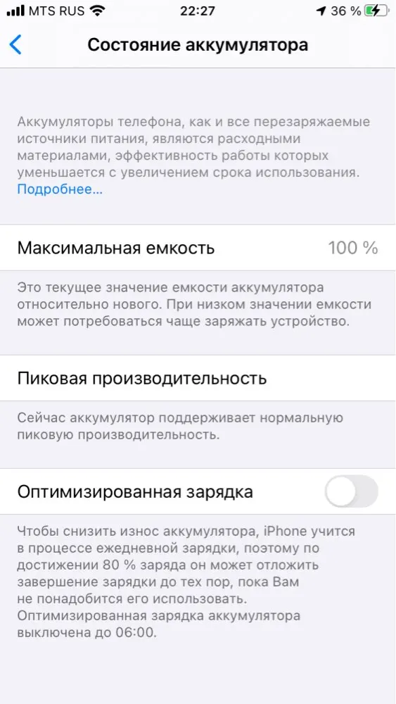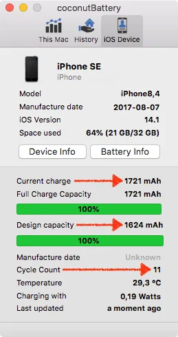ОТЗЫВ СПУСТЯ ДВЕ НЕДЕЛИ ИСПОЛЬЗОВАНИЯ Первые пять дней держал хорошо, потом стал хуже. Но это совпало с обновлением iOS, так что хз. Иногда телефон лагает на 5%, иногда не лагает, поэтому здесь тоже хз. Что могу сказать точно, аккум греется не сильнее оригинала. И производительность в AnTuTu такая же. А вот coconutBattery показывает ёмкость в 1721 мАч, вместо заявленных 1624 мАч, что довольно подозрительно. Зачем китайцу занижать показатели? В целом, аккум ничё. Свои 500 рублей, которые я отдал, стоит.