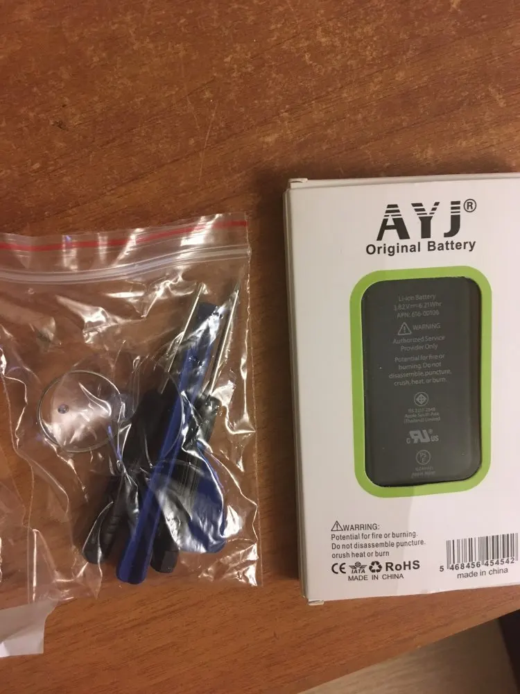 Все пришло. Батарейку сразу же заменил. Для вскрытия корпуса мне не хватило (нет в комплекте) плоской тонкой железки, чтобы подцепить экран, вместо нее использовал угол от штатных салазок для HDD ноутбука. Там железо тонкое и прочное. Тем не менее разобрал и собрал успешно. Уровень заряда 67%. Пока буду разряжать. Два часа уже без изменений. Аналитика телефона сообщает, что состояние аккумулятора 100%. Так как я не первый раз меняю батарейки в айфонах, с уверенностью могу рекомендовать этот товар!