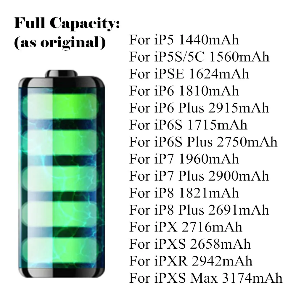 AYJ абсолютно новый AAAAA качественный аккумулятор для iPhone 6S 6 5 5S X SE 7 8 Plus XR Xs Max, Высокая реальная емкость, стикер для инструмента с нулевым циклом