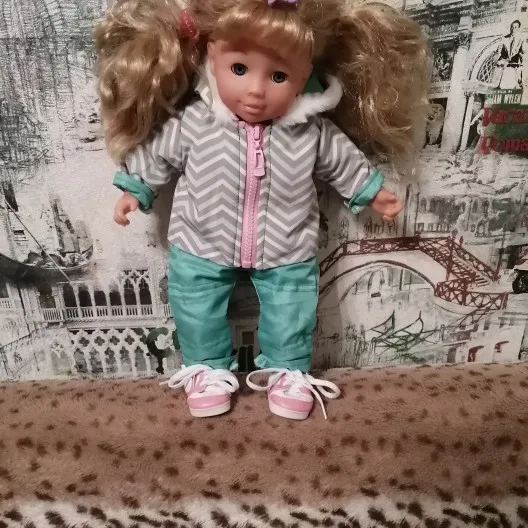 Отличный наряд. На куклу 43 см прям хорошо село. Есть где торчат нитки, но это вроде и не человеку носить . Сразу простернула в ручную. Юбка очень красится, кофта чёрная не так. Так что если кто надумаете с общими вещами постирать - не стоит! Спасибо продавцу!