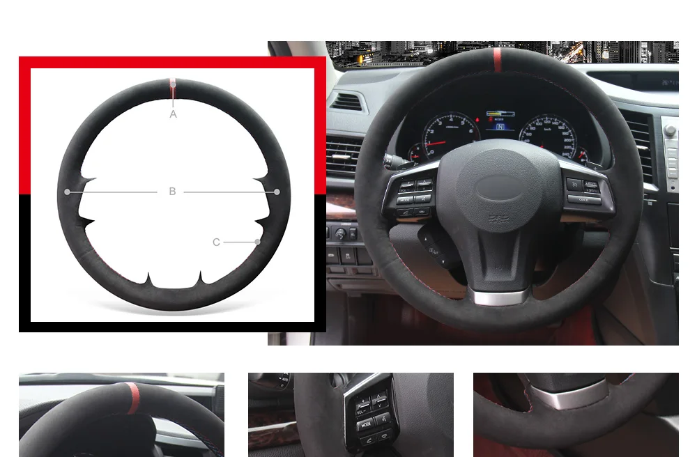 A: Красный МаркерB: Черная синтетическая замшаC: Красная Нить