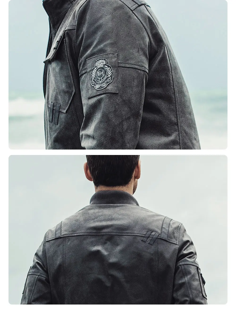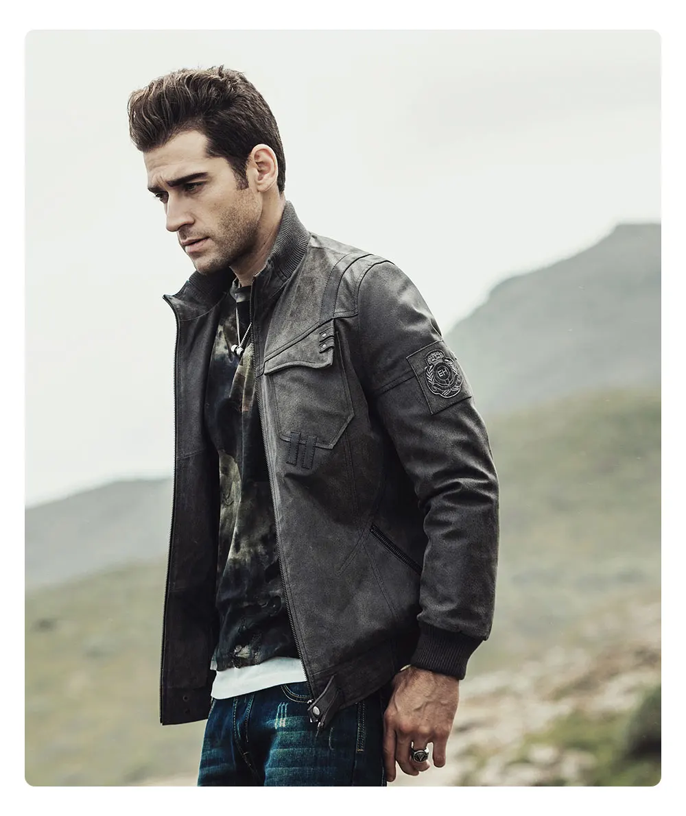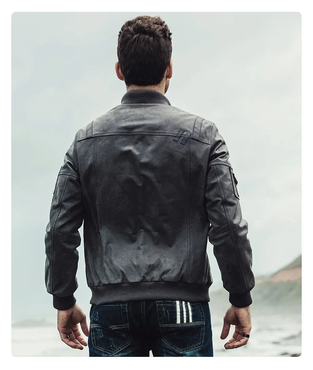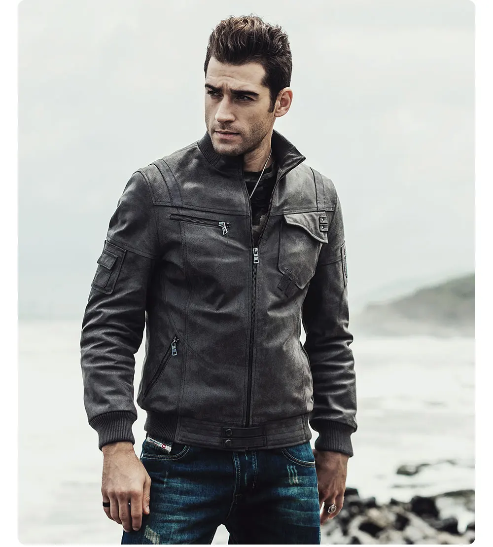 Kожаная куртка мужская, серая теплая куртка бомбер из натуральной кожи, на хлопковой подкладке, байкерский стиль, кожаный жакет на зиму