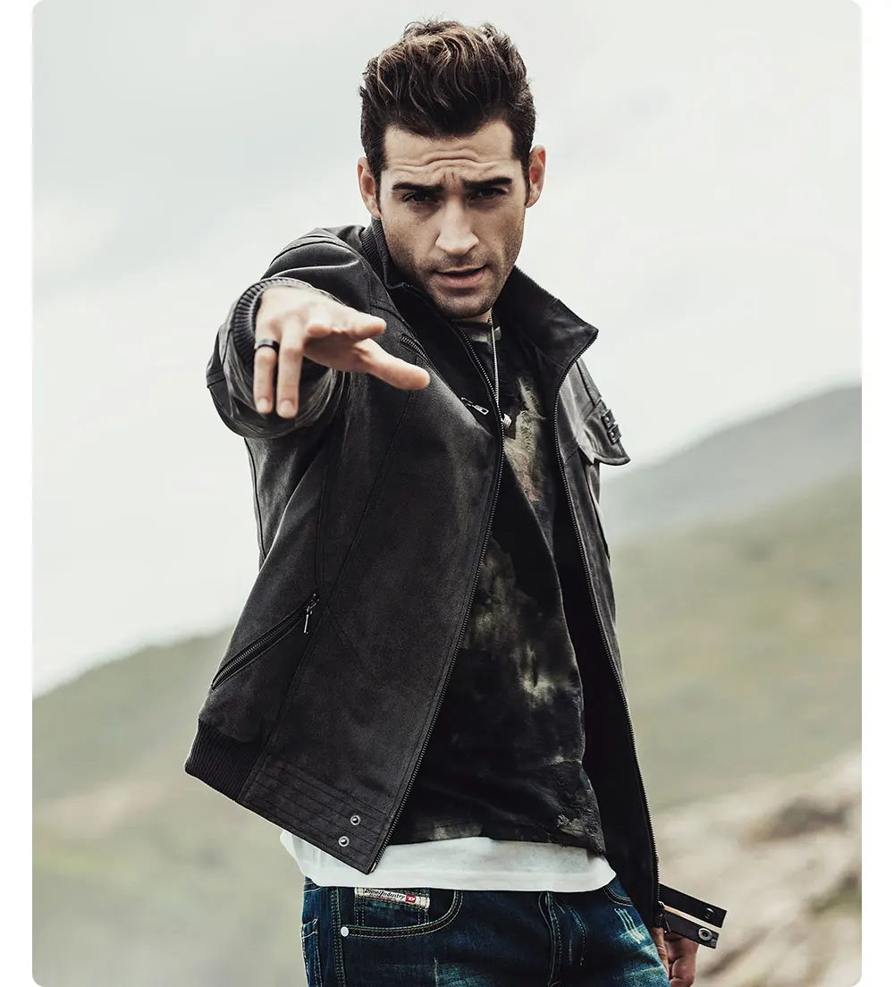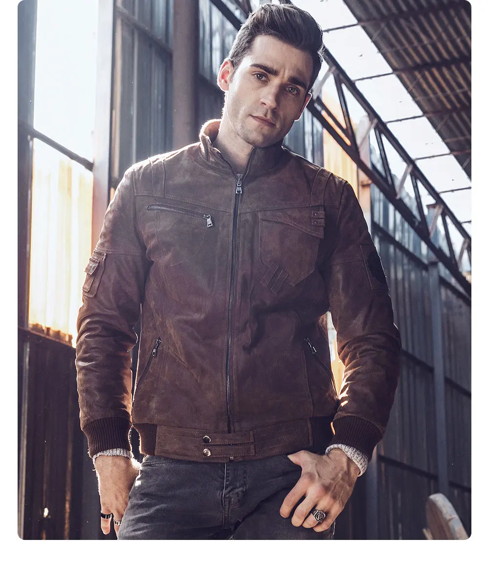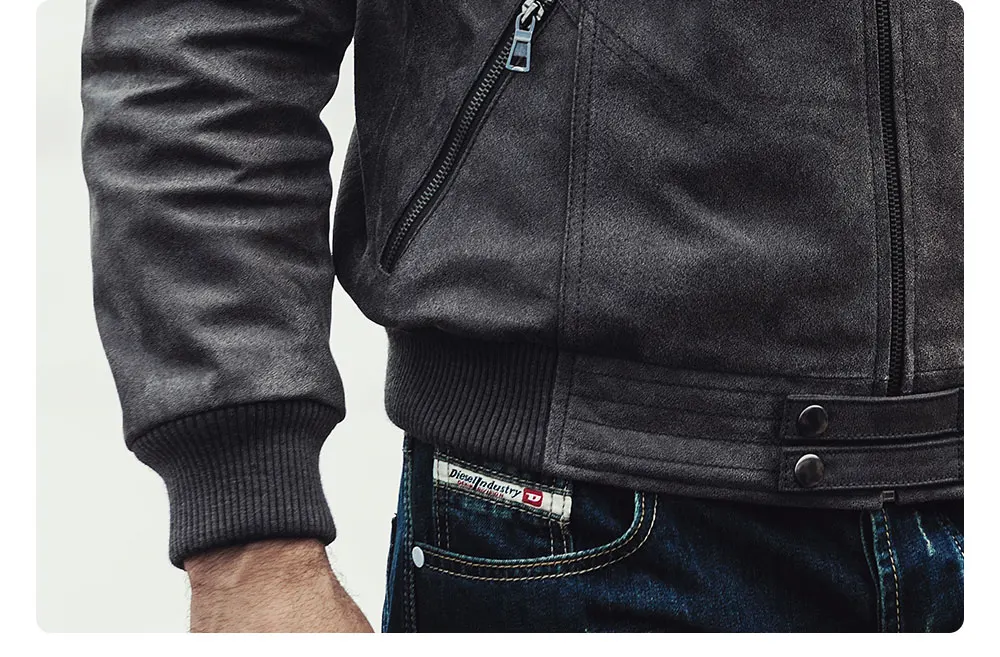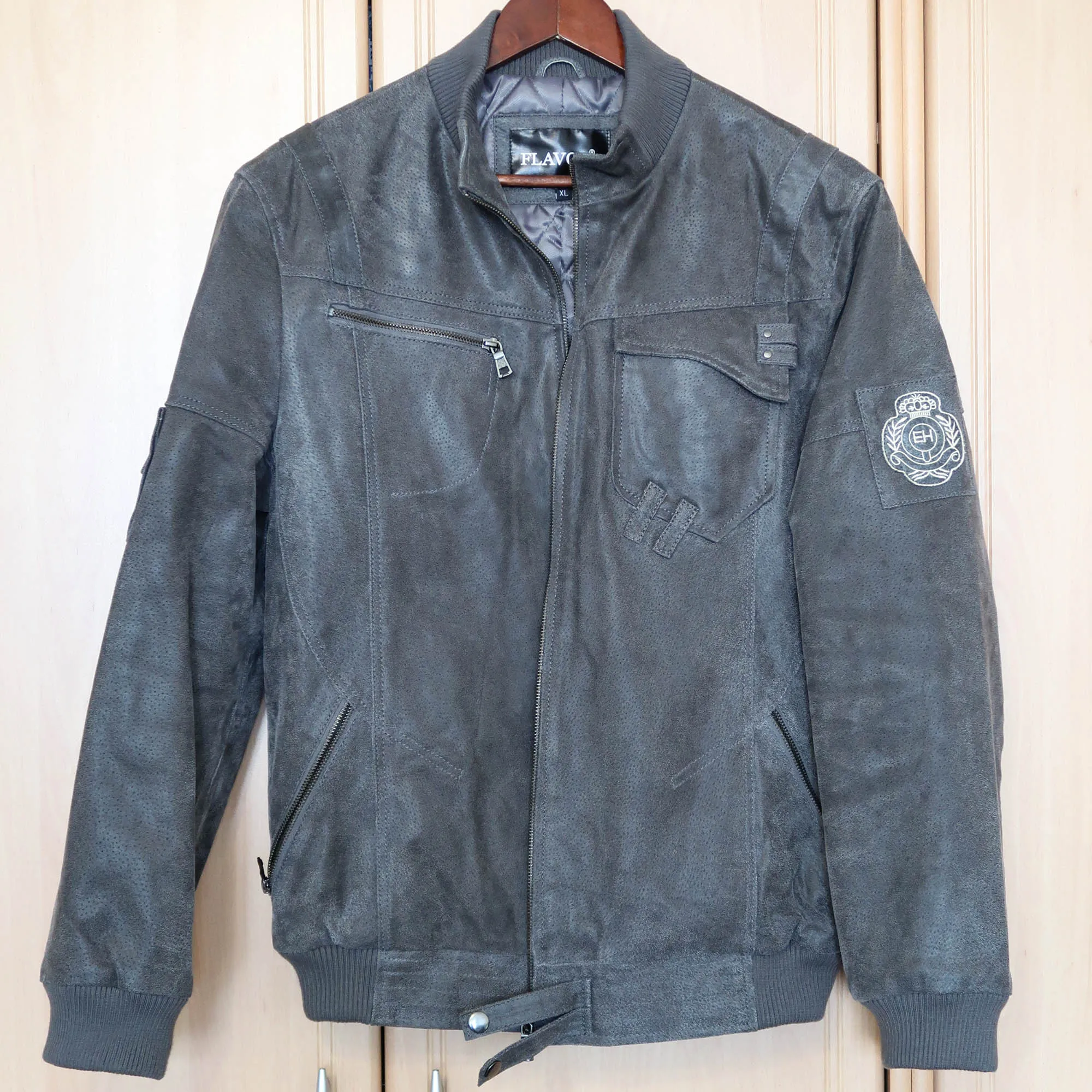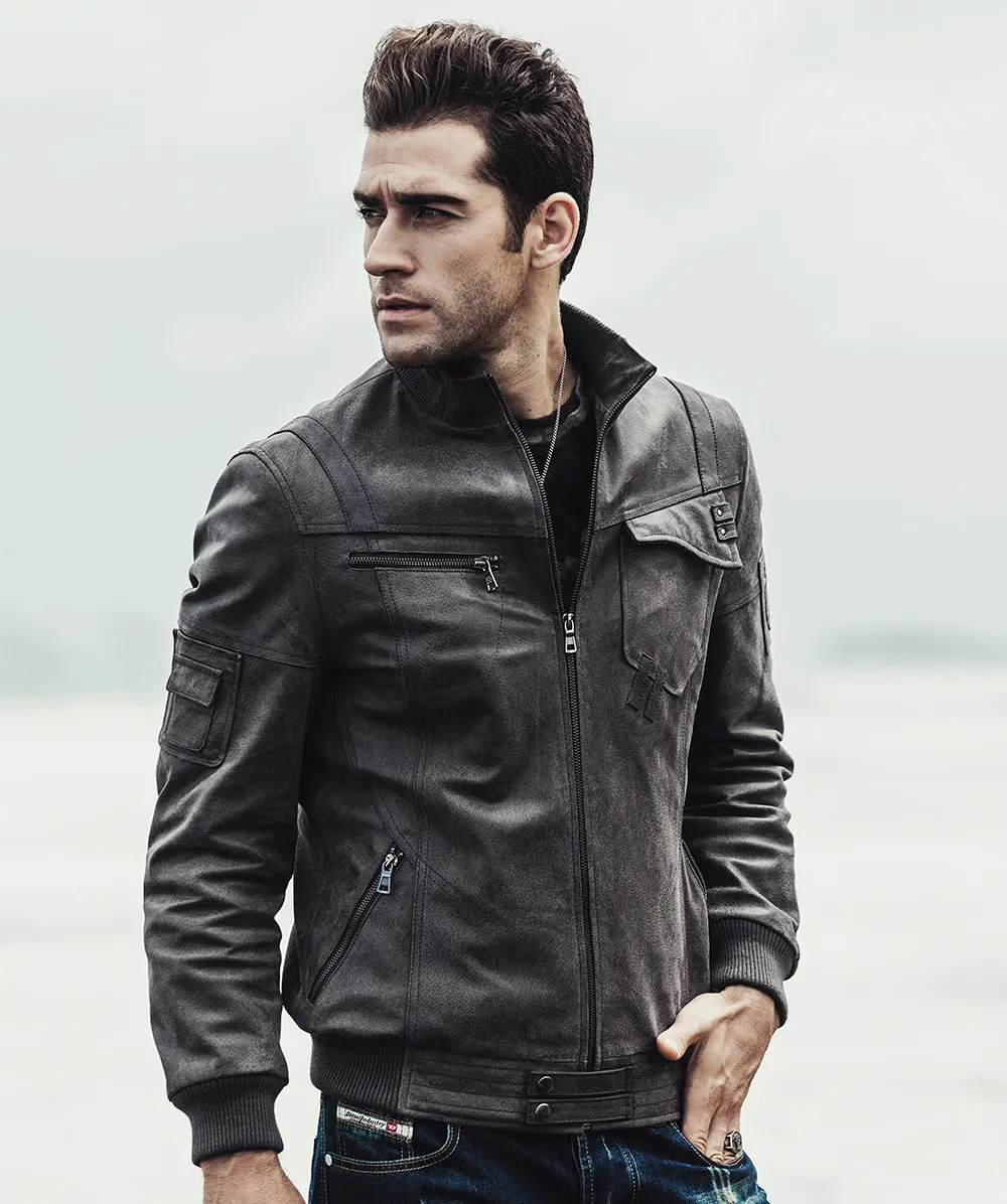 Kожаная куртка мужская, серая теплая куртка бомбер из натуральной кожи, на хлопковой подкладке, байкерский стиль, кожаный жакет на зиму