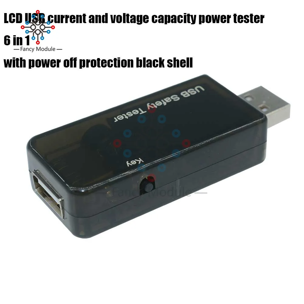 ЖК-дисплей USB тестер силы тока и напряжения шесть в одном с защитой от выключения питания черный корпус