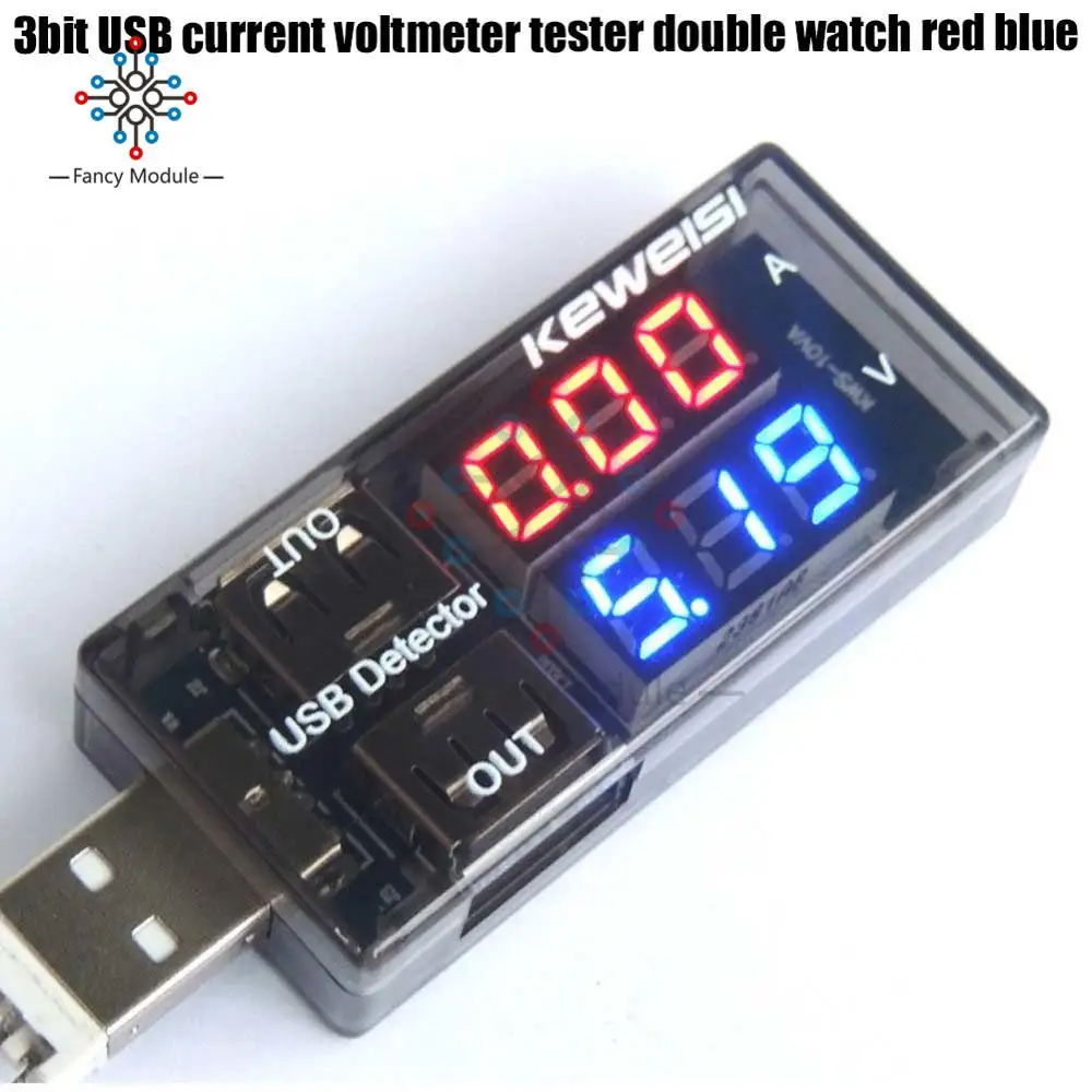 3-битный USB вольтметр тестер с двумя часами красный и синий