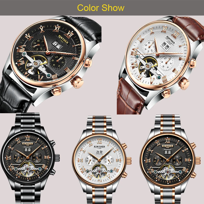 Kinyued Скелет автоматические часы Для мужчин Водонепроницаемый парящего турбийона Деловые часы Для мужчин S автоподзаводом horloges mannen челнока