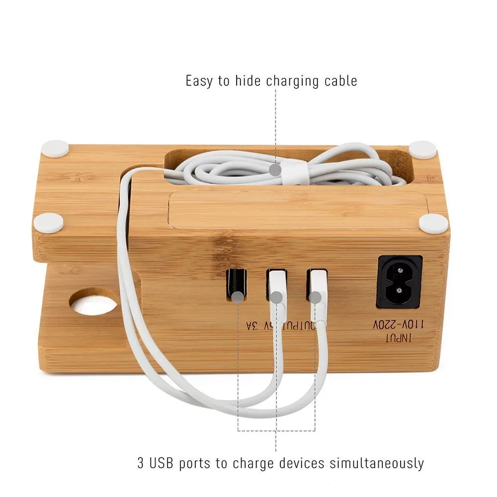 Зарядки телефона док-станции для Apple Watch для iphone 8 7 7 плюс 6 S плюс 5 5S деревянный держатель стенд с Зарядное устройство USB Порты и разъёмы